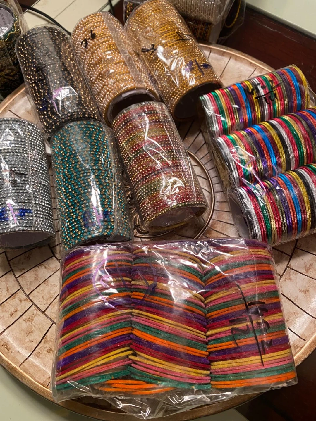 Selling sets of sparkly bangles! These are perfect for adding a touch of glamour to any outfit. They come in a variety of colours and designs. Check out the pictures for more details!