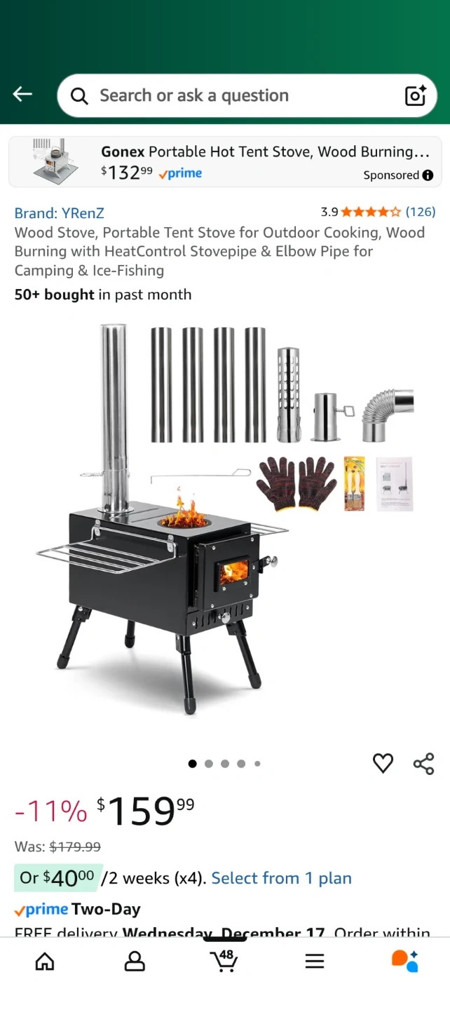 Looking to sell a YRenz Gonex portable tent stove for outdoor cooking, wood burning with heat control stovepipe & elbow pipe for camping & ice-fishing!