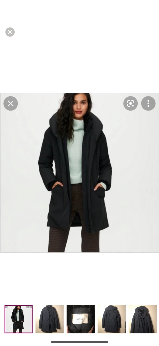 Selling a Wilfred Cocoon Parka in size small! It's designed in Canada and engineered to withstand Canada's harsh winters. The 700+ fill power makes for a warmer, lighter parka. The goose down offers superior warmth with less weight. Made with water and windproof fabric!