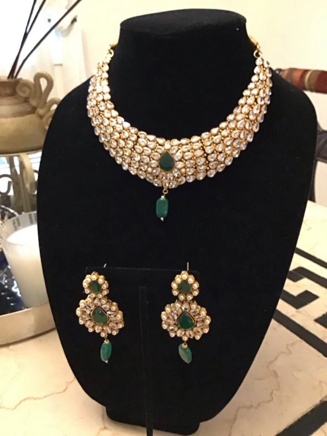 Selling a beautiful necklace and earring set! This set would be perfect for a special occasion or to add a touch of elegance to any outfit. The set features intricate detailing and a classic design.