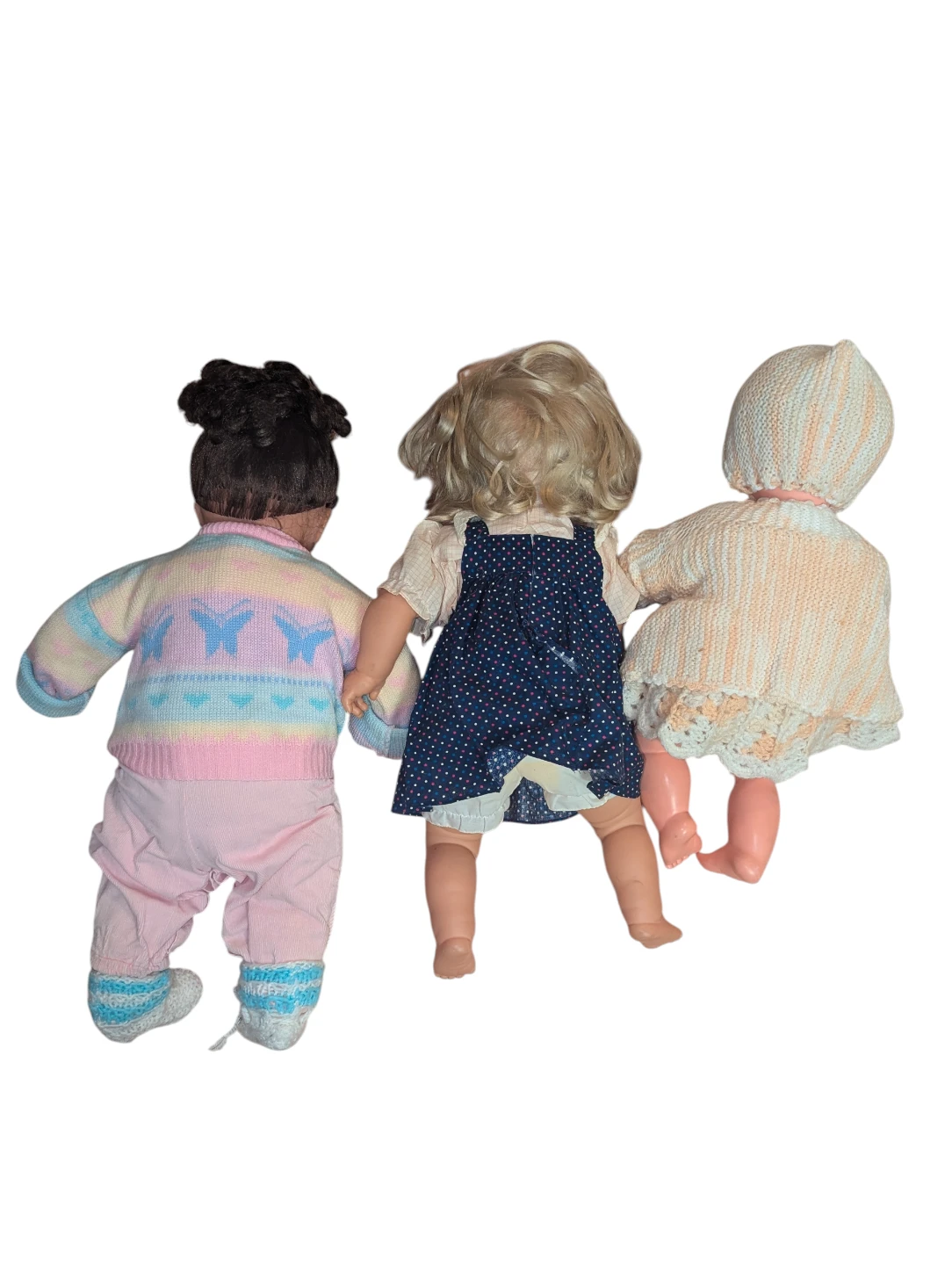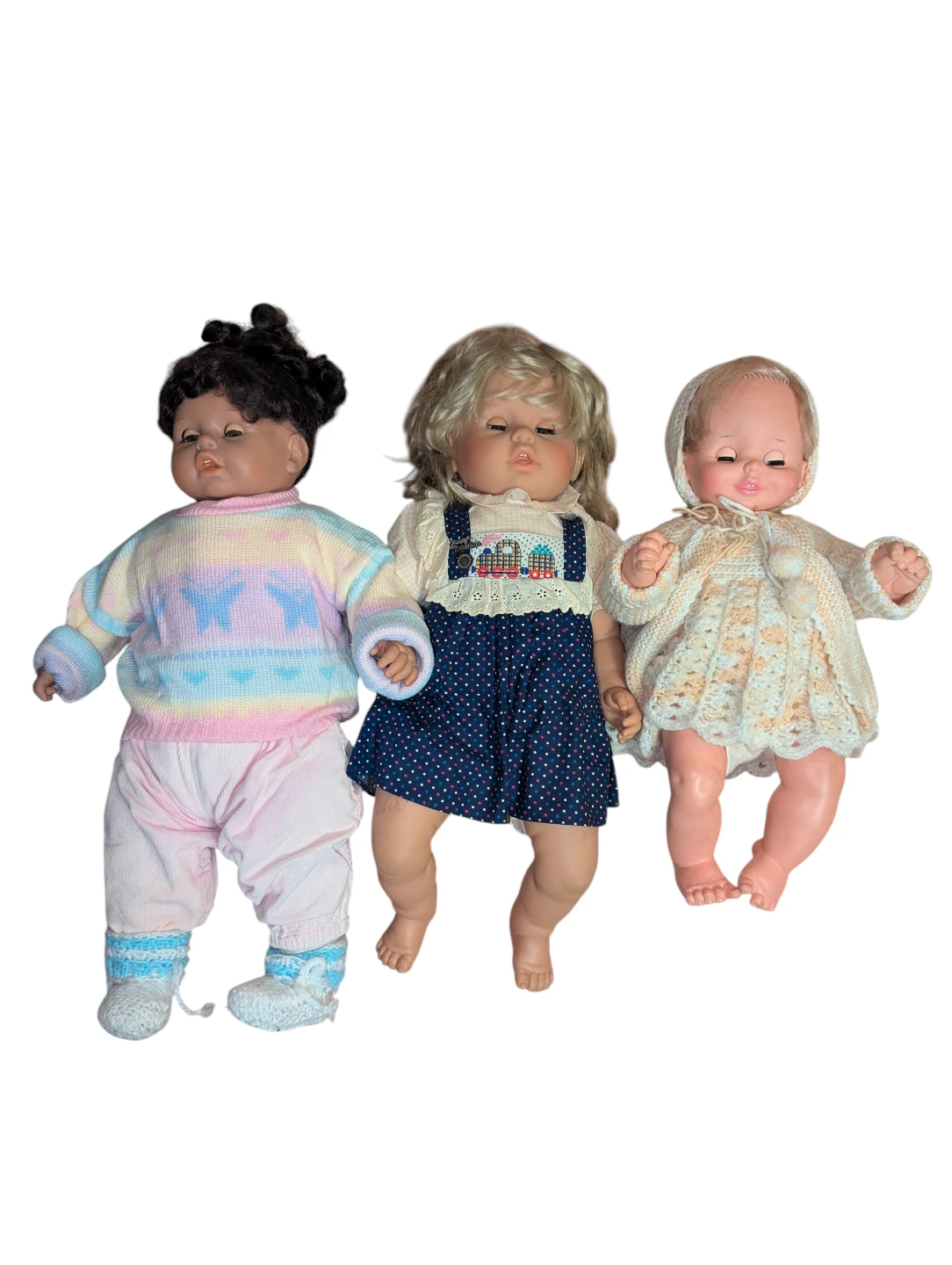 *SOLD* The doll with the blue dress has a ZAPF Creation tag on it.