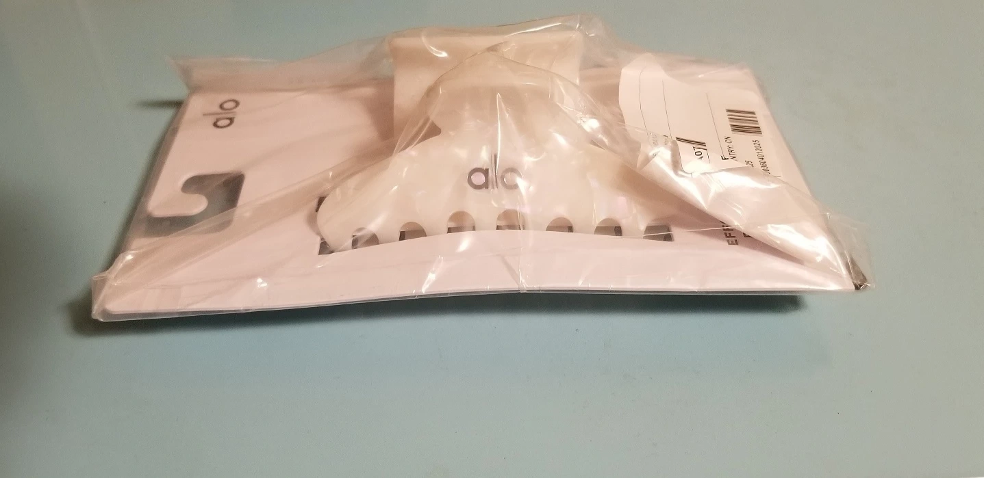 Selling a brand new Alo Yoga Outline Claw Clip in the White Pearl! It's still in its original packaging and ready for a new owner. This stylish hair accessory is perfect for keeping your hair up in a chic and effortless way.