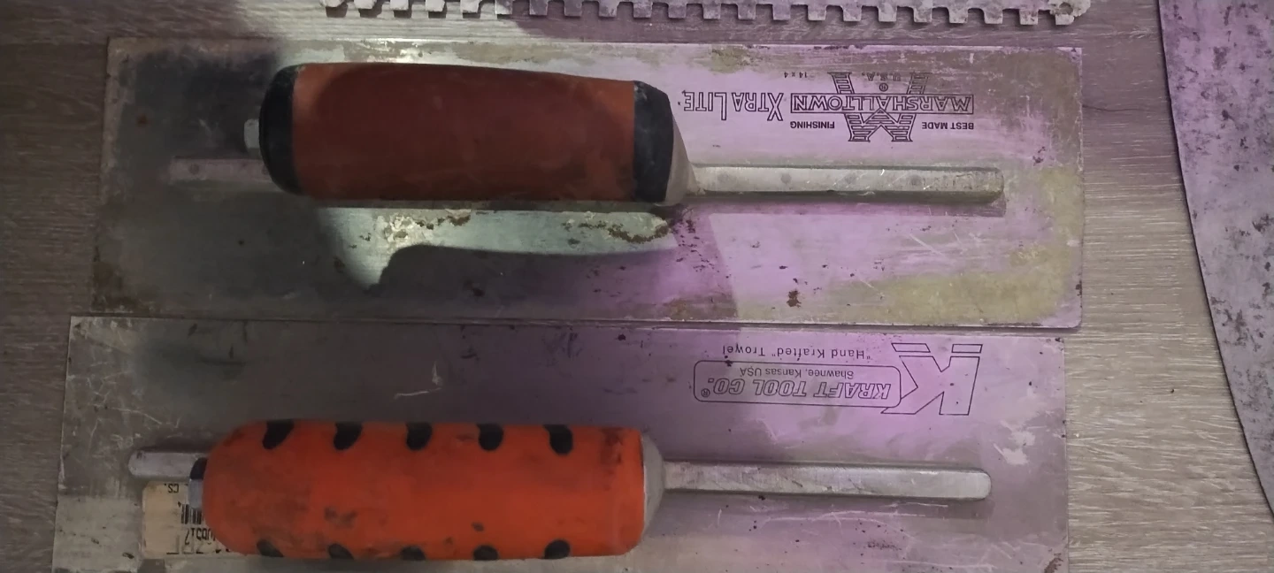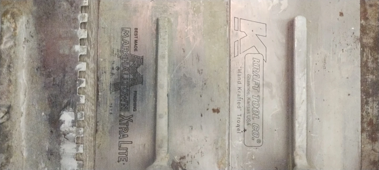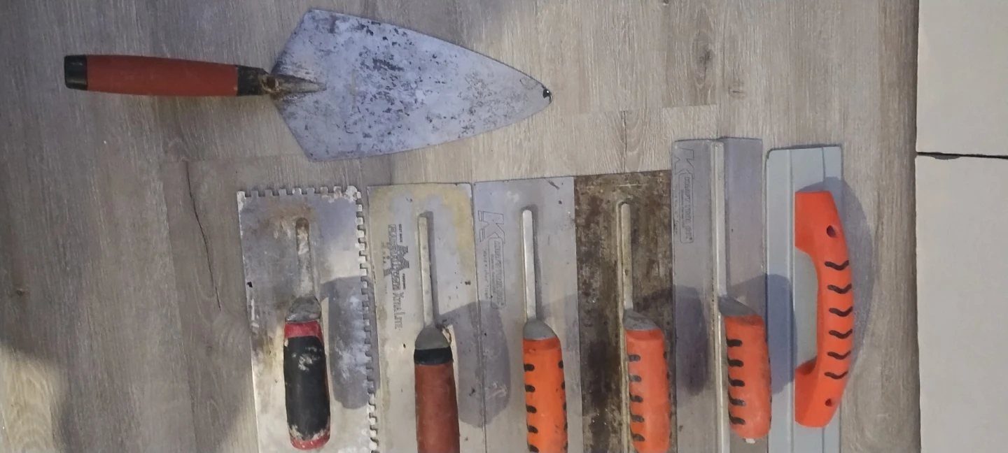 Selling a collection of trowels, including brands like Marshalltown and Kraft Tool Co. These have been used but are still functional for your tiling or plastering projects