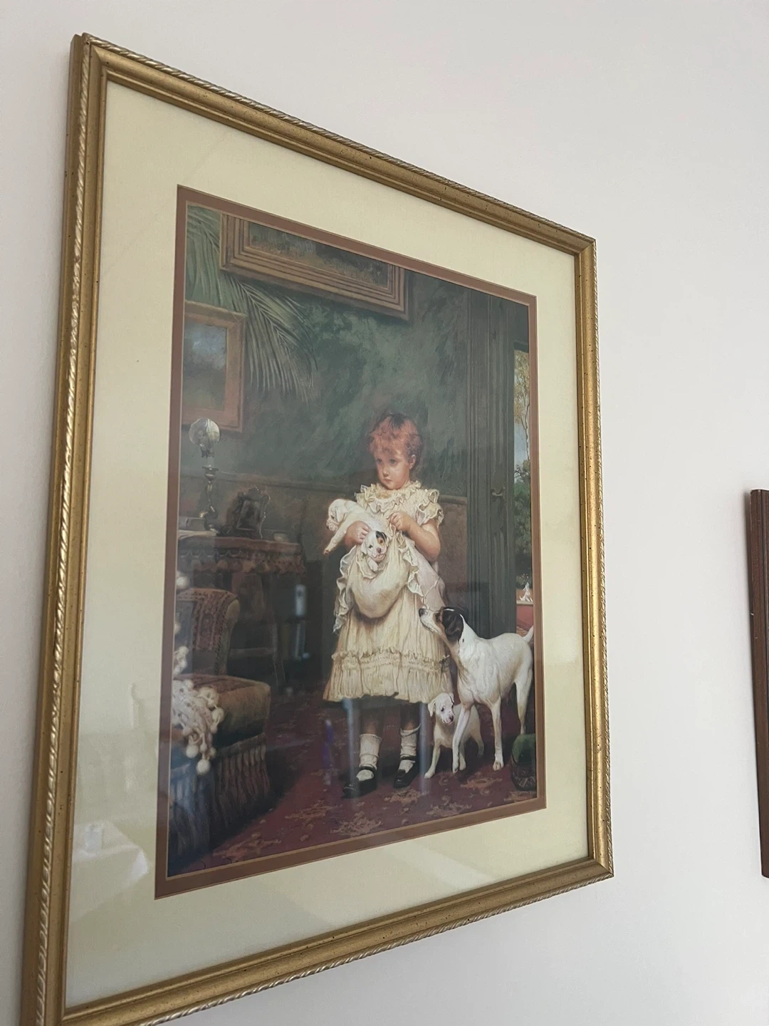 These are framed prints of artwork by Charles Burton Barber, depicting children and dogs.
