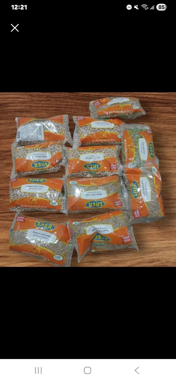 Giving away bags of SHER Kabuli Chick Peas and Green Lentil Large. Net weight is 2 lb (907g) per bag from a pet free home,no delivery pickup only