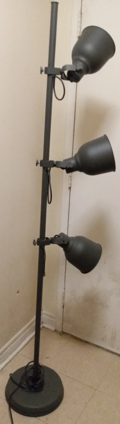 Selling an IKEA floor lamp with three adjustable lights! This lamp is great for adding focused light wherever you need it. Perfect for reading, crafting, or just brightening up a room. It's in good condition and ready to use