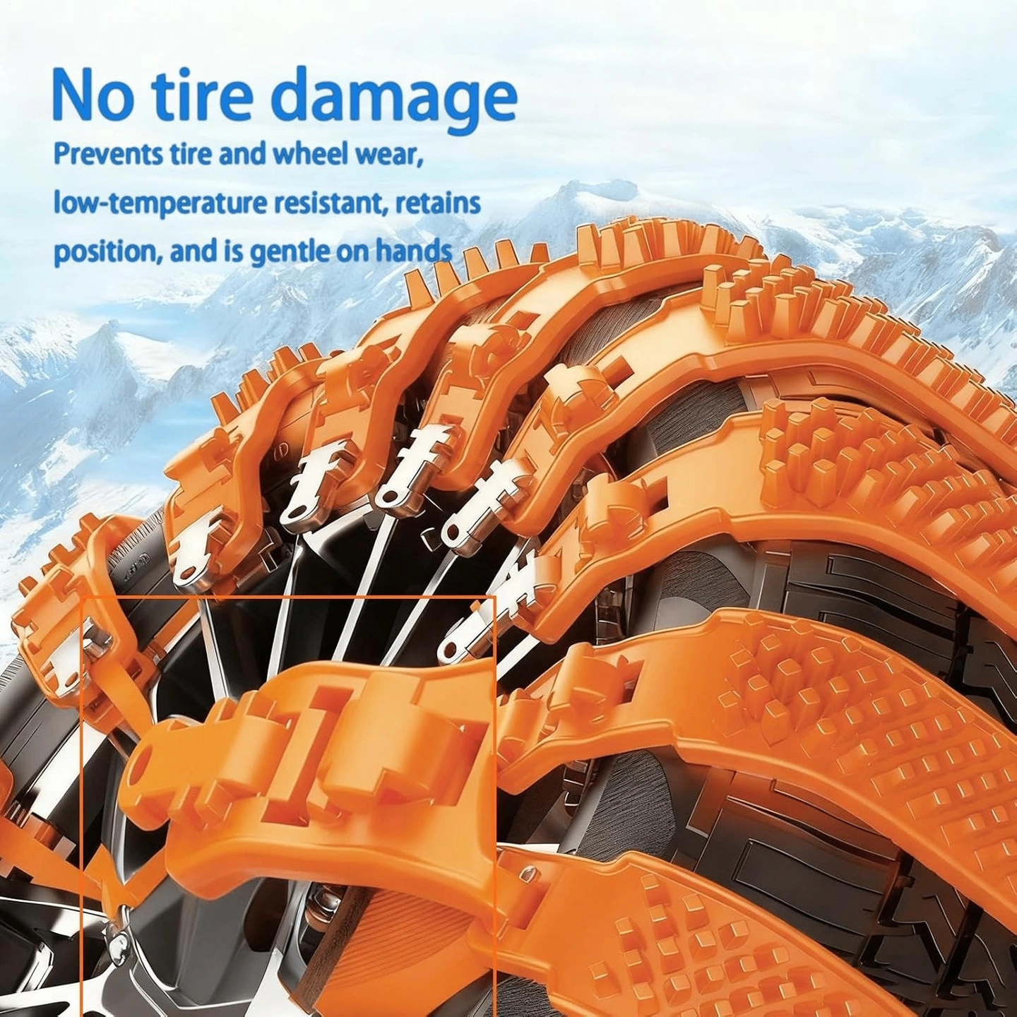 Advanced Protective Cushioning: Equipped with a protective cushioned layer, these tire chains effectively diminish metal-tire friction, delivering enhanced tire defense and promoting prolonged tire performance on rugged winter landscapes