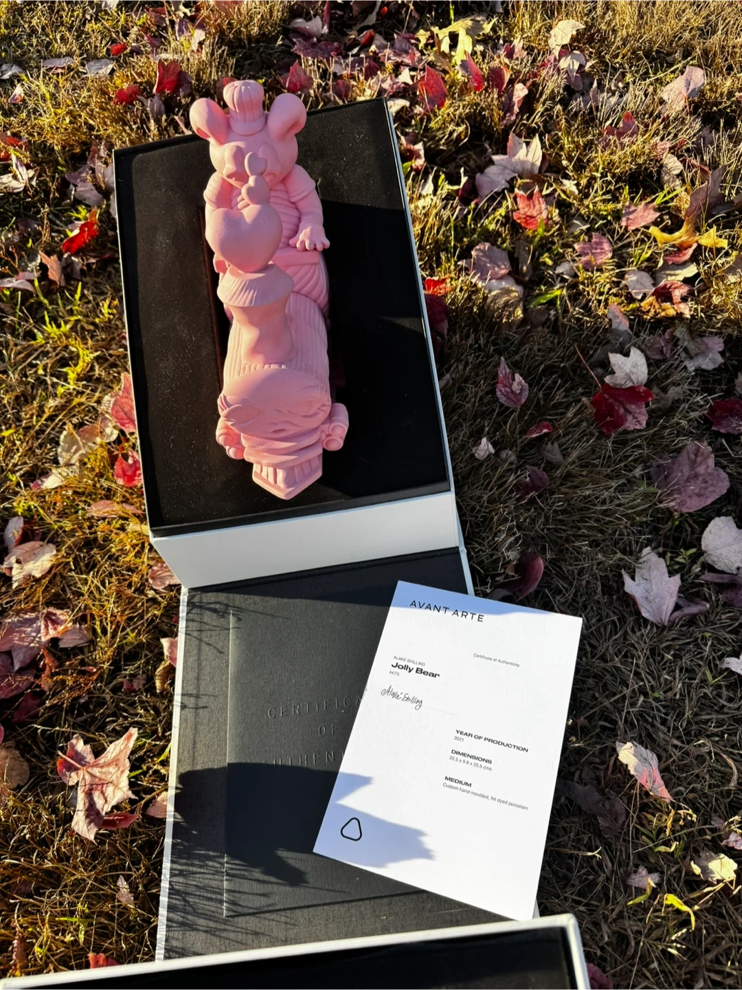 Im selling a limited edition porcelain sculpture called “Jolly Bear “ by artist Alake Shilling — it’s like a cute, colorful bear figure from 2021, edition of seventy-five, made with Avant Arte. It's in great condition and comes with the original box and certificate of authenticity!