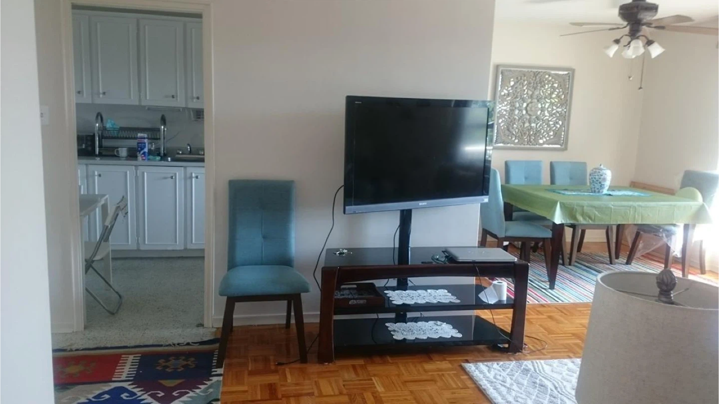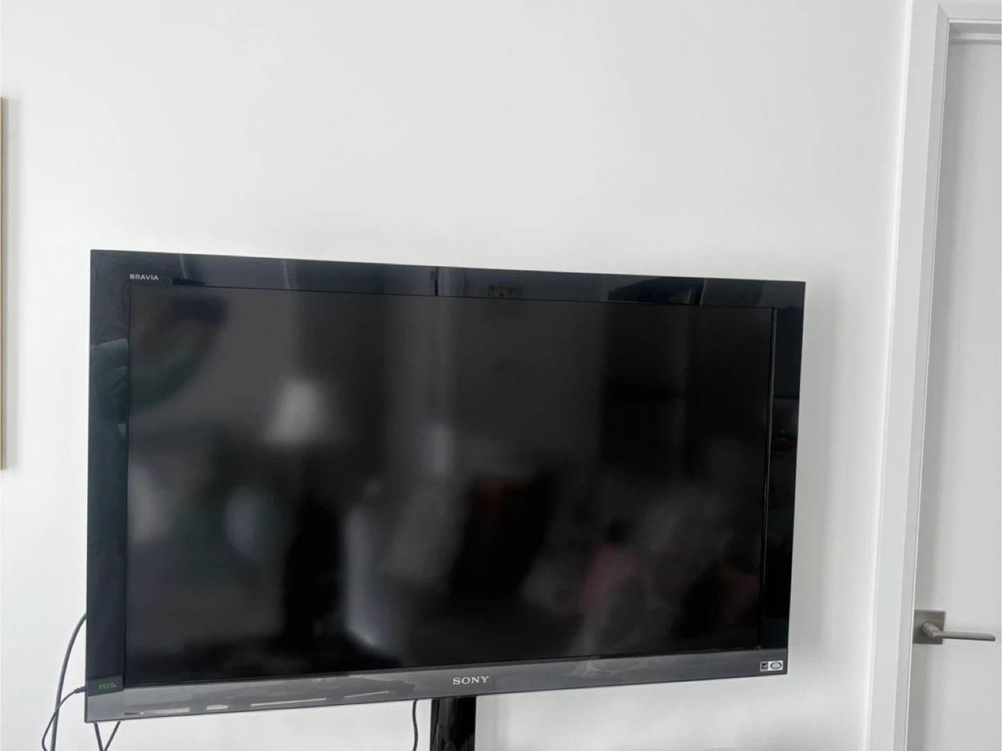 Selling a Sony Bravia 43” TV. It's in great condition and ready for a new home entertainment setup. Selling with its hanging table with three black glass shelves. Price is for both items together.