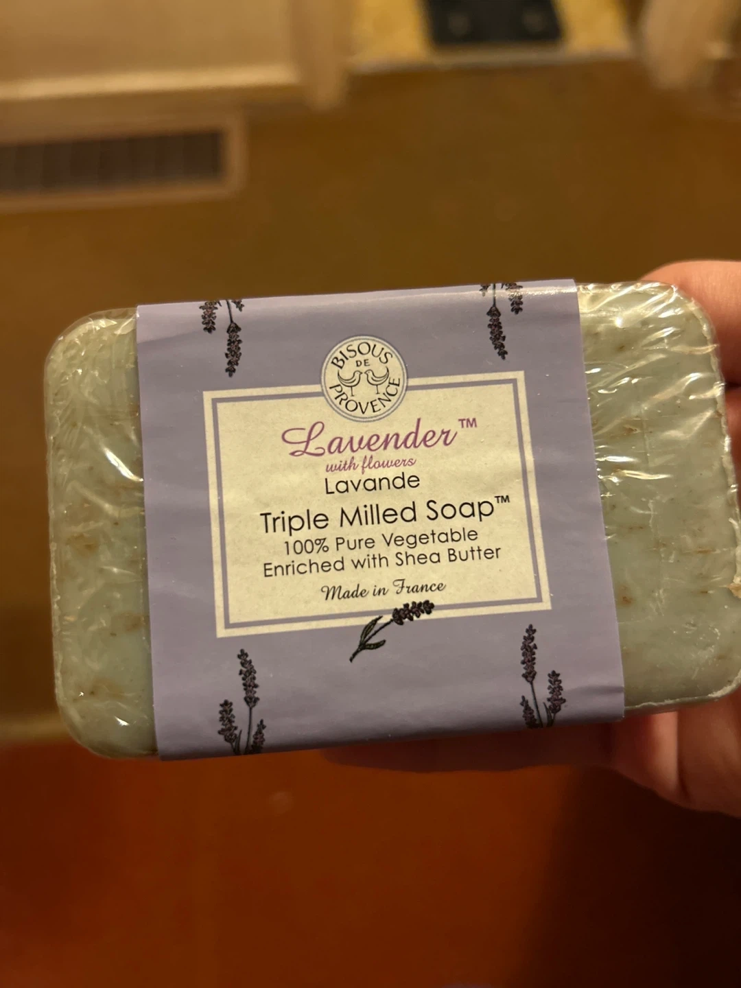 Selling a bar of Bisous de Provence Lavender Triple Milled Soap. It’s made in France and enriched with shea butter. It's 100% pure vegetable soap, perfect for a gentle cleanse