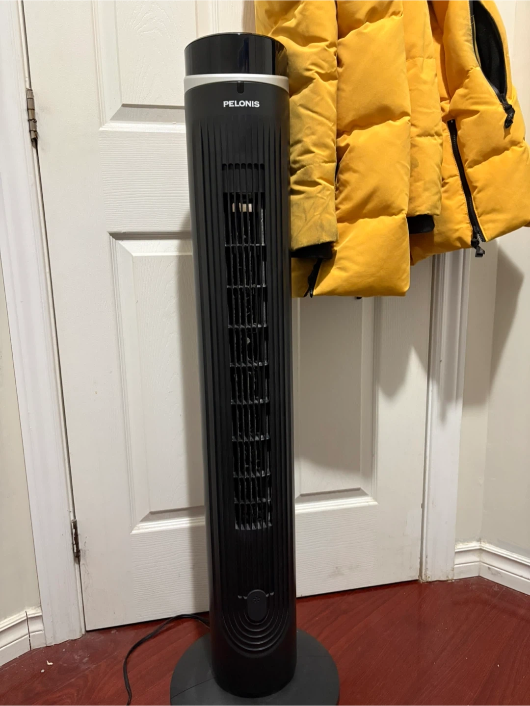 Here's a Pelonis tower fan in black. It's in great condition and ready to keep you cool!