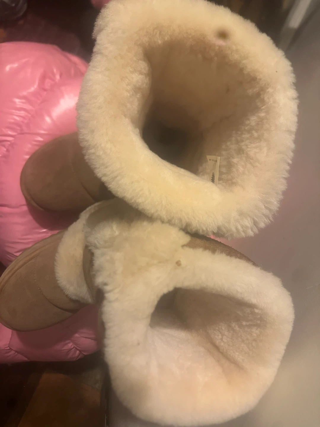 Cozy UGG boots in a lovely brown suede material. They're super comfy and perfect for keeping your feet warm. They have some signs of wear, but still have lots of life left!
