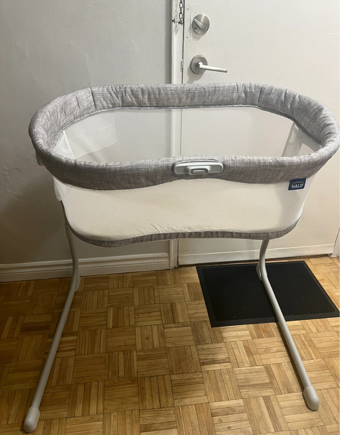 Selling a Halo BassiNest swivel sleeper. It's in great condition and like brand new. This bassinet is perfect for keeping your little one close and secure during those early months. The swivel feature makes it easy to reach your baby from bed. It's a great option for parents looking for a safe and convenient sleeping solution!