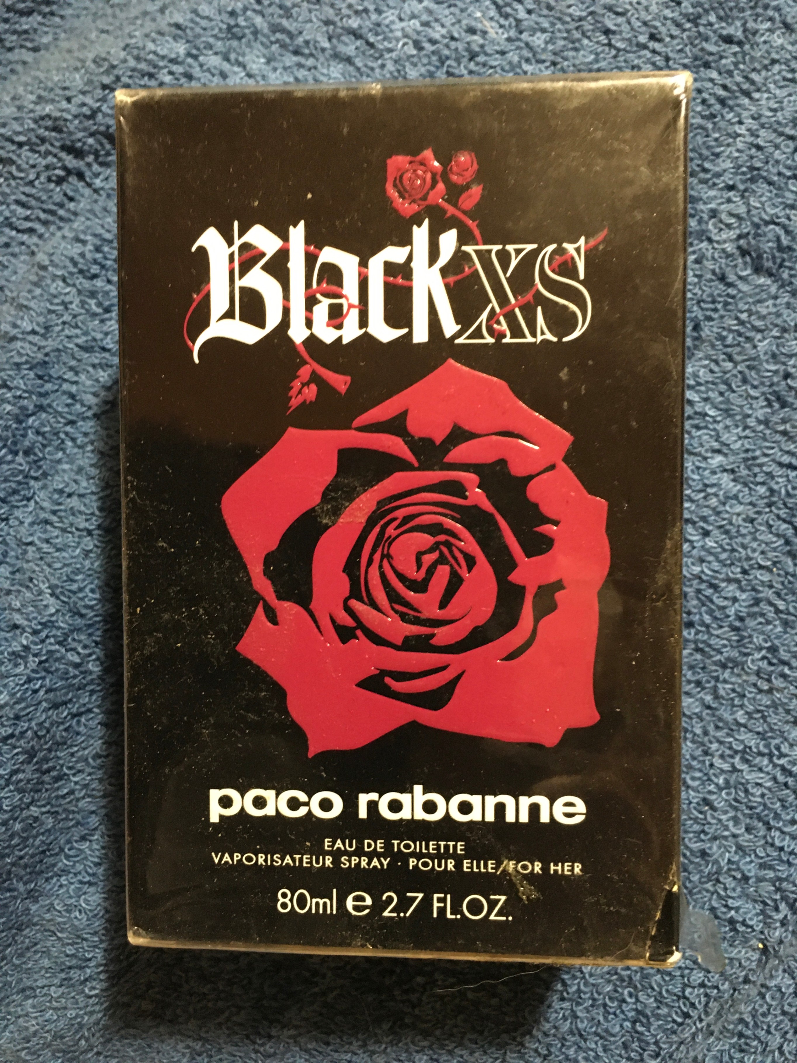 Selling a bottle of Paco Rabanne Black XS Eau de Toilette. It's a 80ml bottle with a vaporisateur spray for her. The box is included!