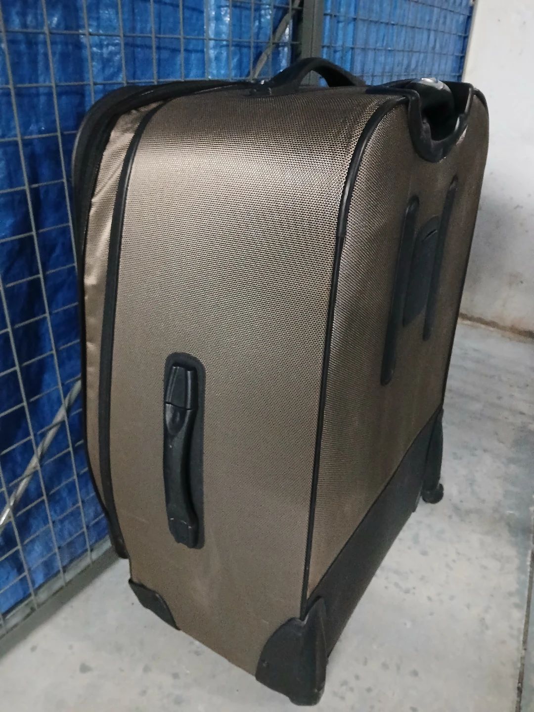 Checked bag luggage size 73 cm height, 75 cm height with wheels, 45.5 cm length, 31 cm width before expansion is open