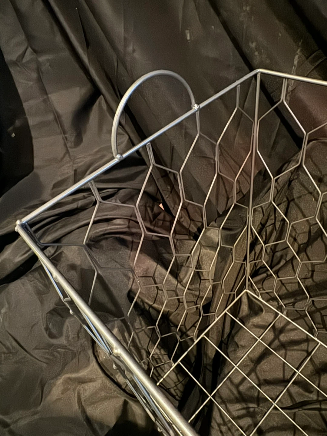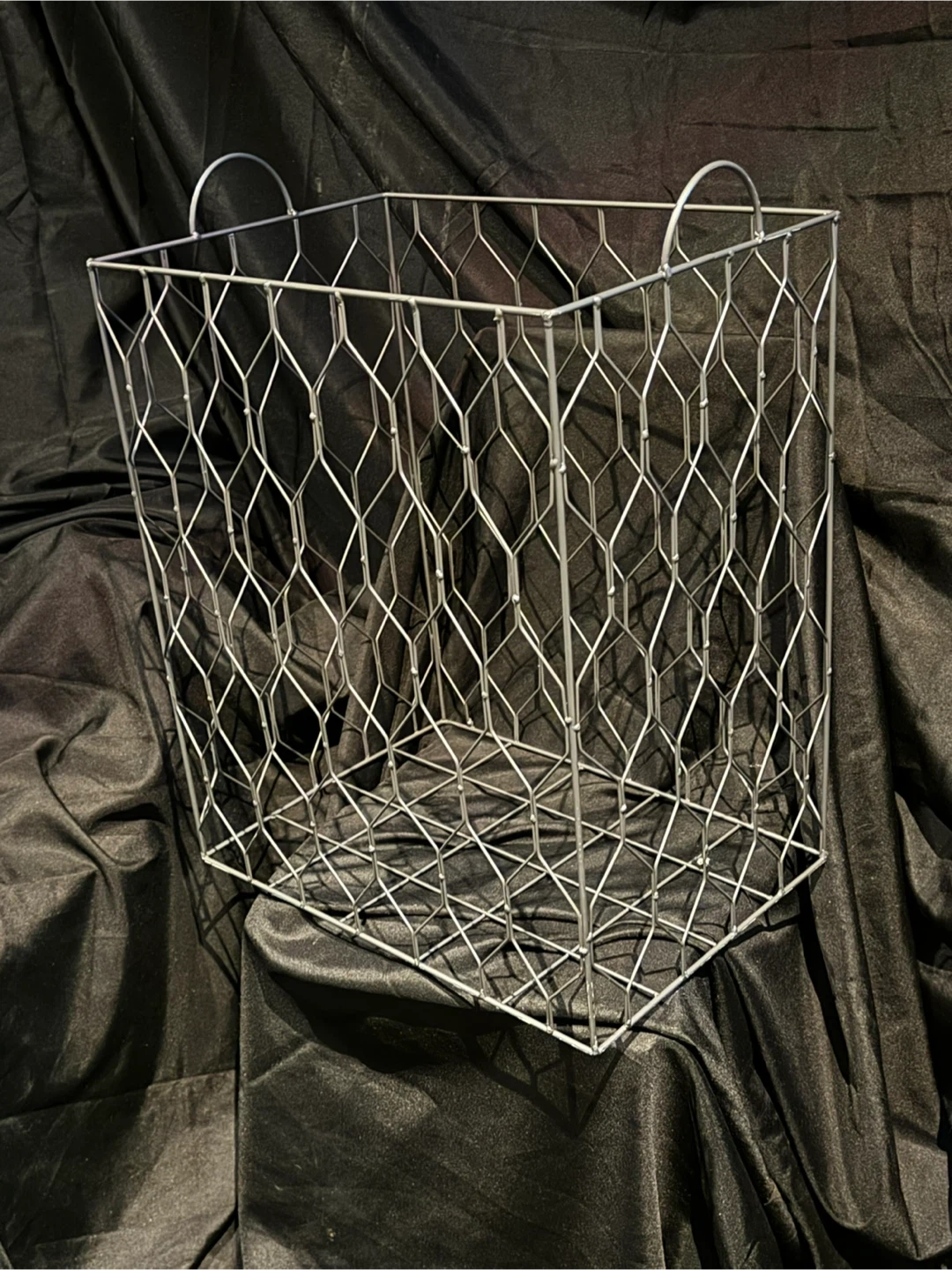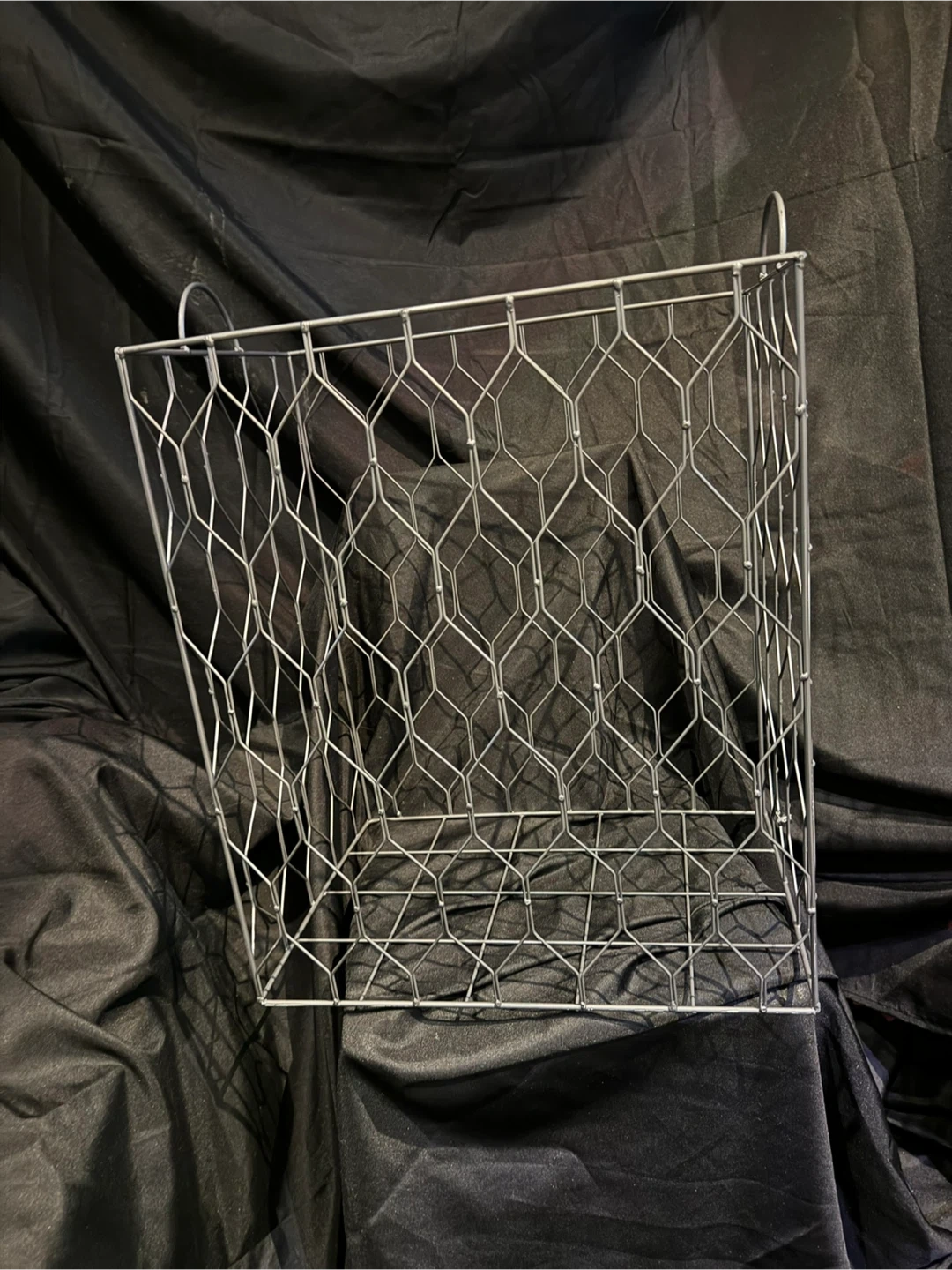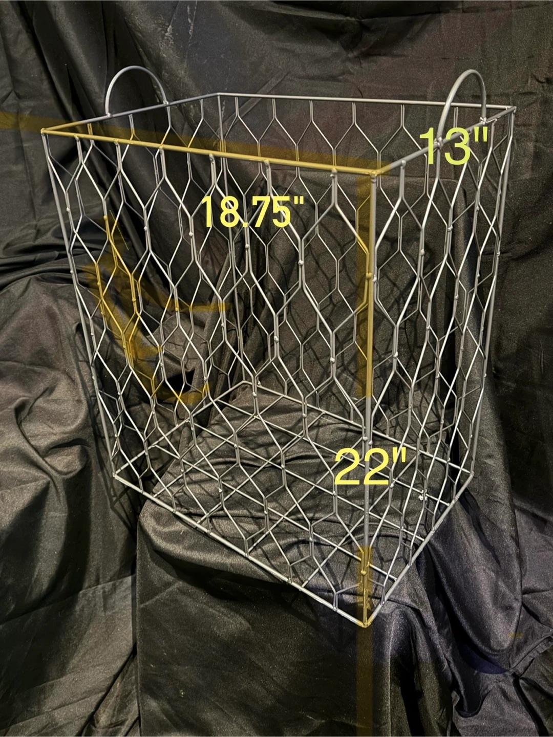 Selling a silver wire basket, perfect for storage or decor! It measures approximately 18.75 inches wide, 13 inches high, and 22 inches deep. It's in great condition and ready for a new home!