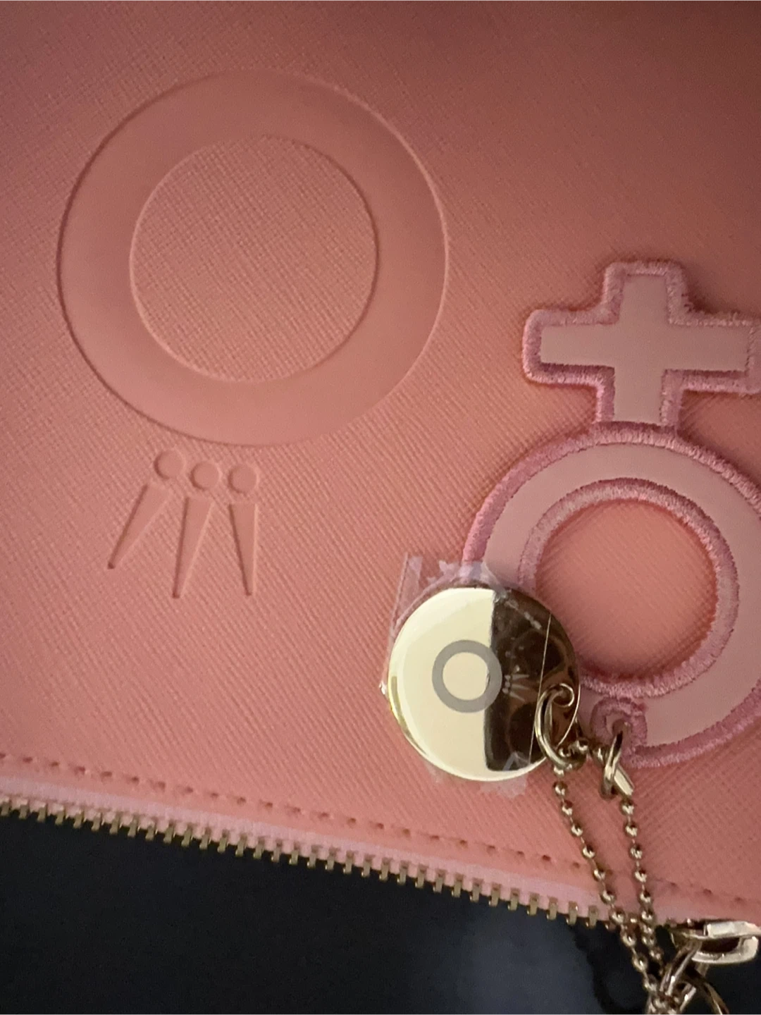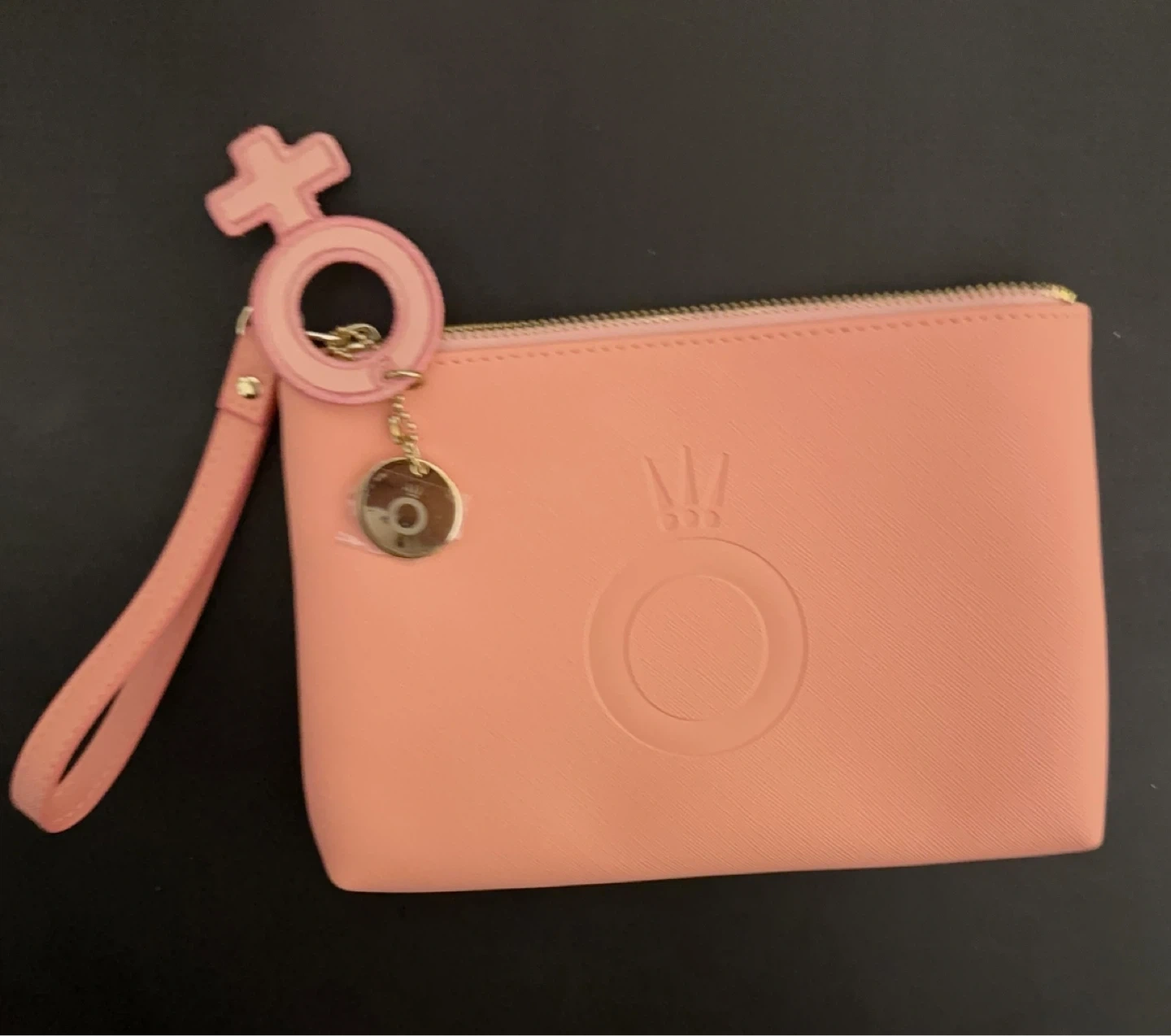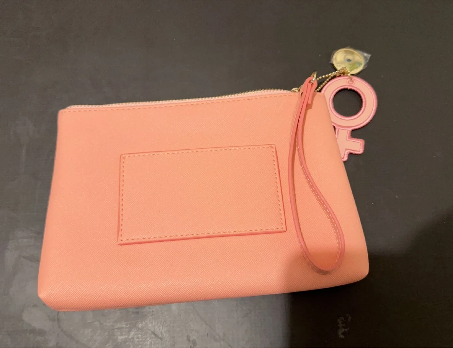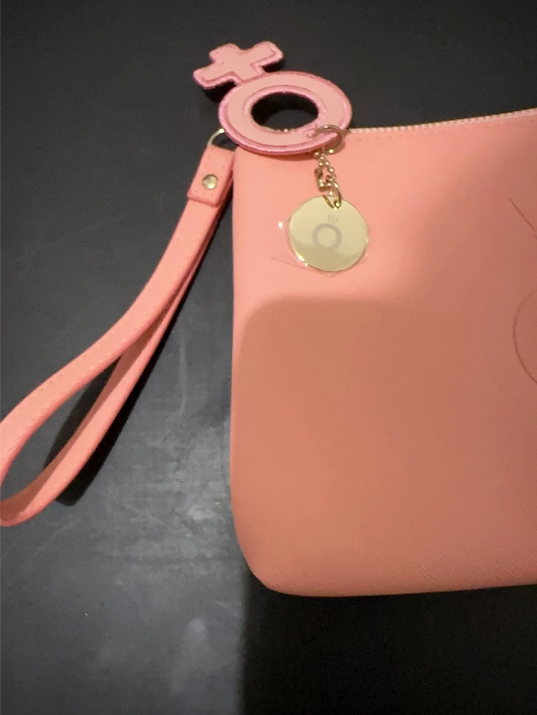 Here's a cute Pandora clutch in a lovely shade of pink! It comes with a wristlet strap for easy carrying. The clutch features the Pandora logo and a charm. It's perfect for keeping your essentials organized in style