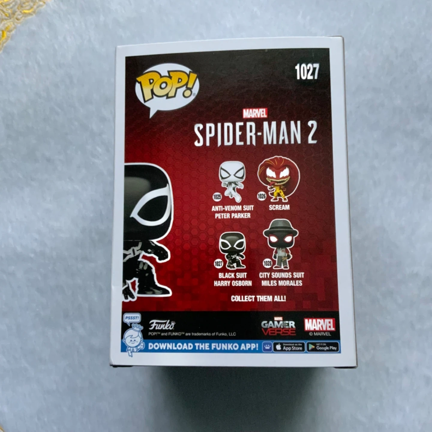 Selling a Funko Pop! from the Marvel Spider-Man 2 Gamerverse series. This is Black Suit Harry Osborn, figure number 1027. It's in great condition and comes in the original box!