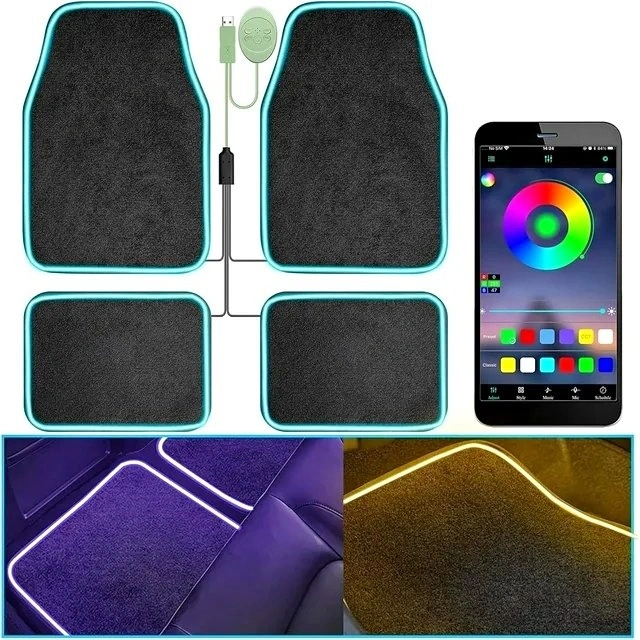 These interior Car Lights Floor Mats are equipped with app control & built-in LED strip lights. The microphone synchronizes the car lights with the music, adjusts the flicker to match the intensity of the sound, for iOS or Android. The LED lights strip of this carpet floor mat has 4 light flashing modes and 16 million colors. Customize colors and adjust brightness through the smart App's color palette; you can easily control the color and brightness.