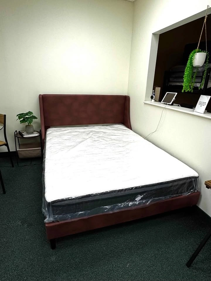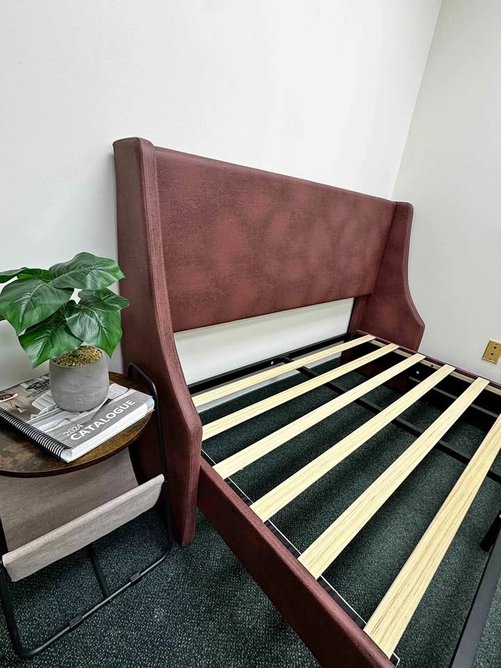 SALE Queen Wingback Vintage Burgundy Strong Platform Bed BRAND N