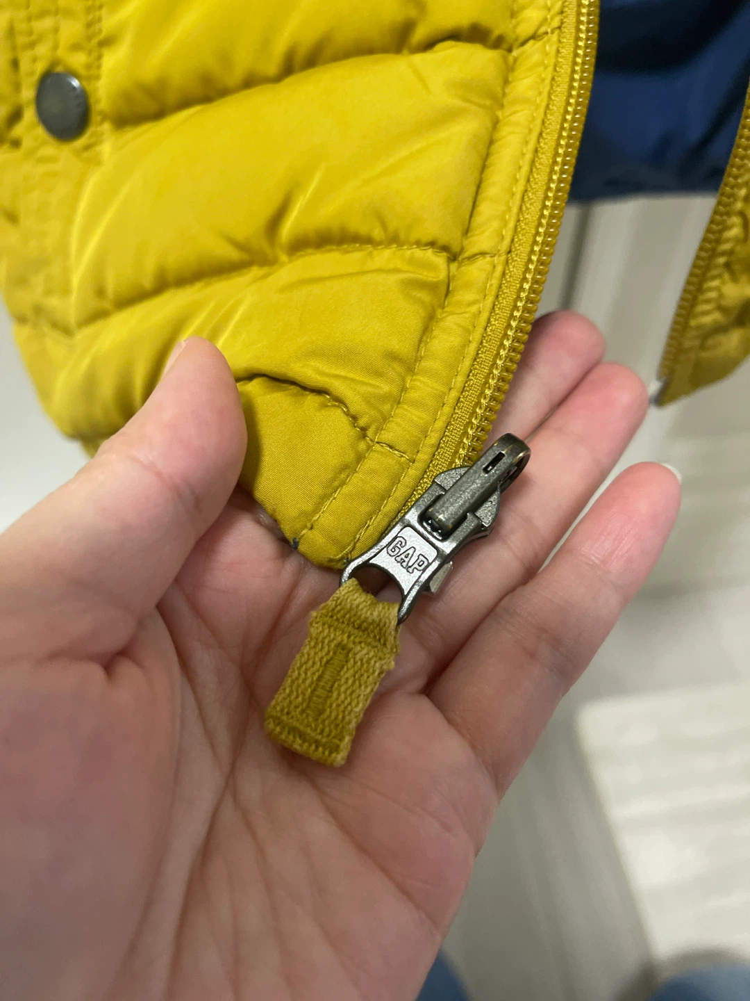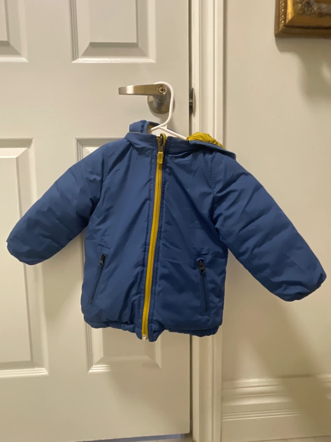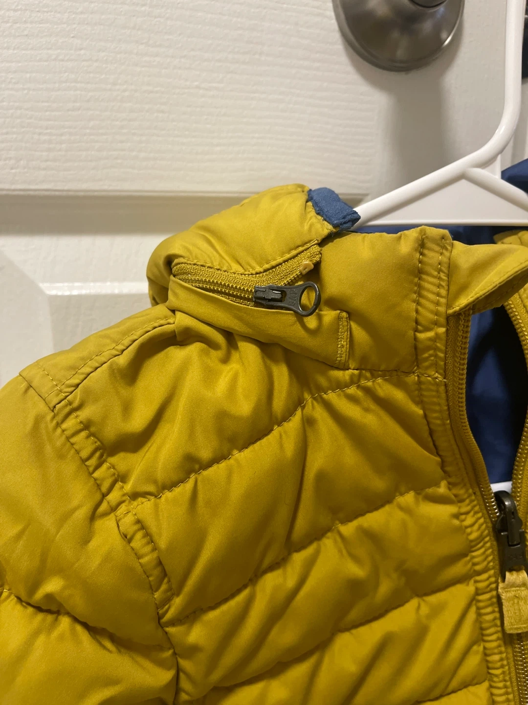 Selling a Gap Kids puffer jacket in Blue/Mustard! It's in great condition and ready for the cooler weather. One side is mustard and the other is blue.