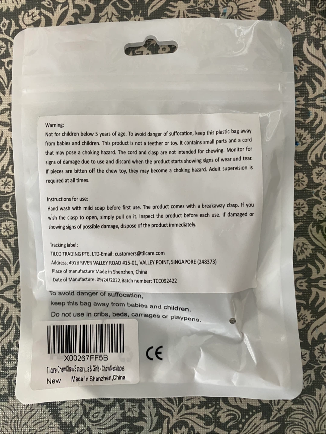 1 / 21 / 2Buy & SellTilcare Chew Sensory Necklace - NewTilcare Chew Sensory Necklace - NewFreeI'm selling a brand new Tilcare Chew Sensory Necklace. It's designed for sensory needs and safe chewing. My son did not like it and not used them.ConditionNewWHERE TO MEETCheck LocationView MapSELLERverifiedBelceLeslie1317 reviews1 chats·1 favorites·26 viewsSEND CHAT TO SELLERHi Belce! I’m interested in your listing.Hi Belce! I’m interested in your listing.Get the Karrot app to chatSign In to chat