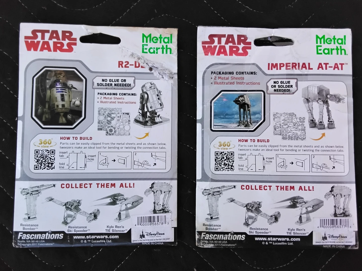 Selling two Metal Earth Star Wars model kits: R2-D2 and Imperial AT-AT