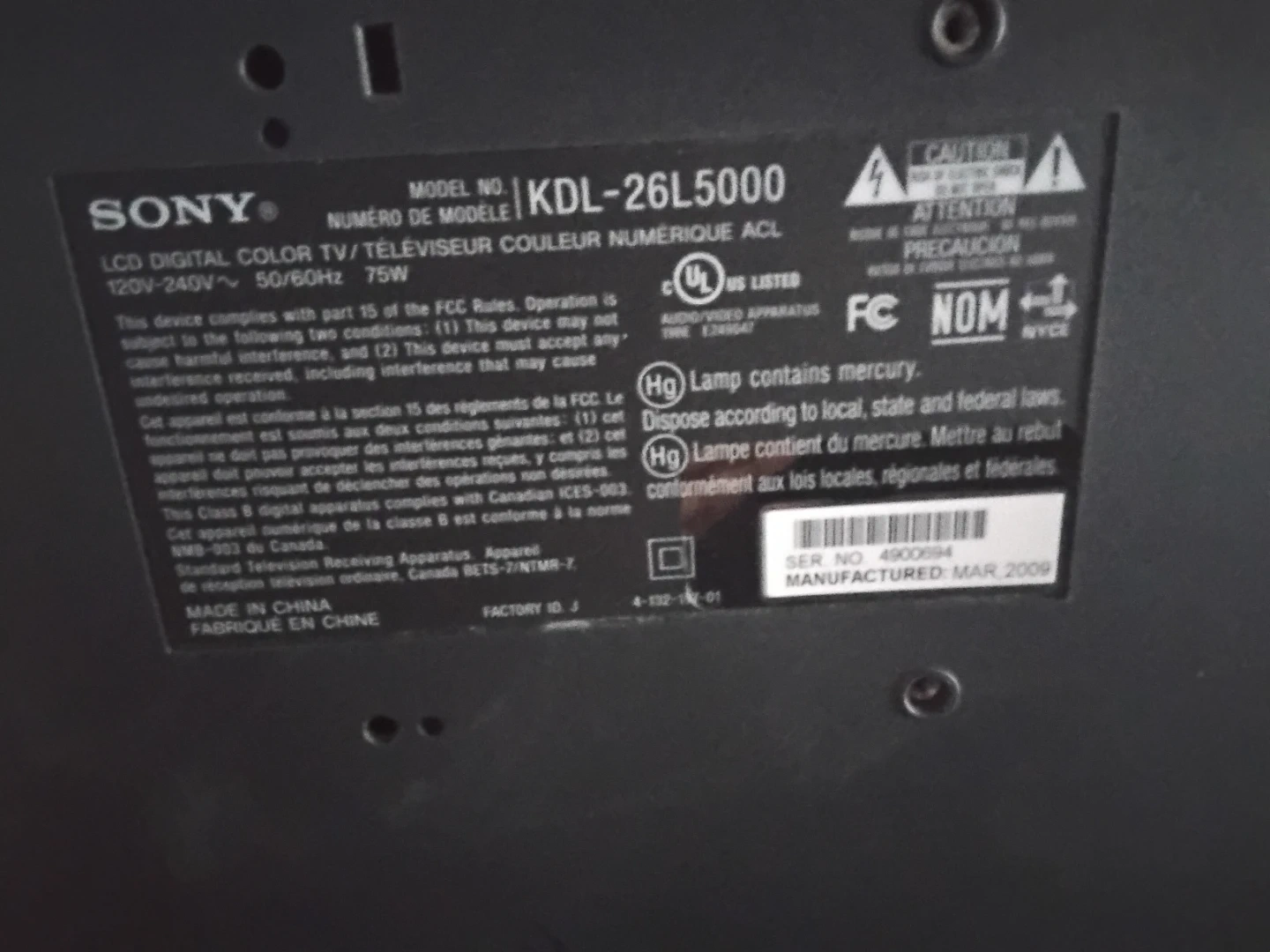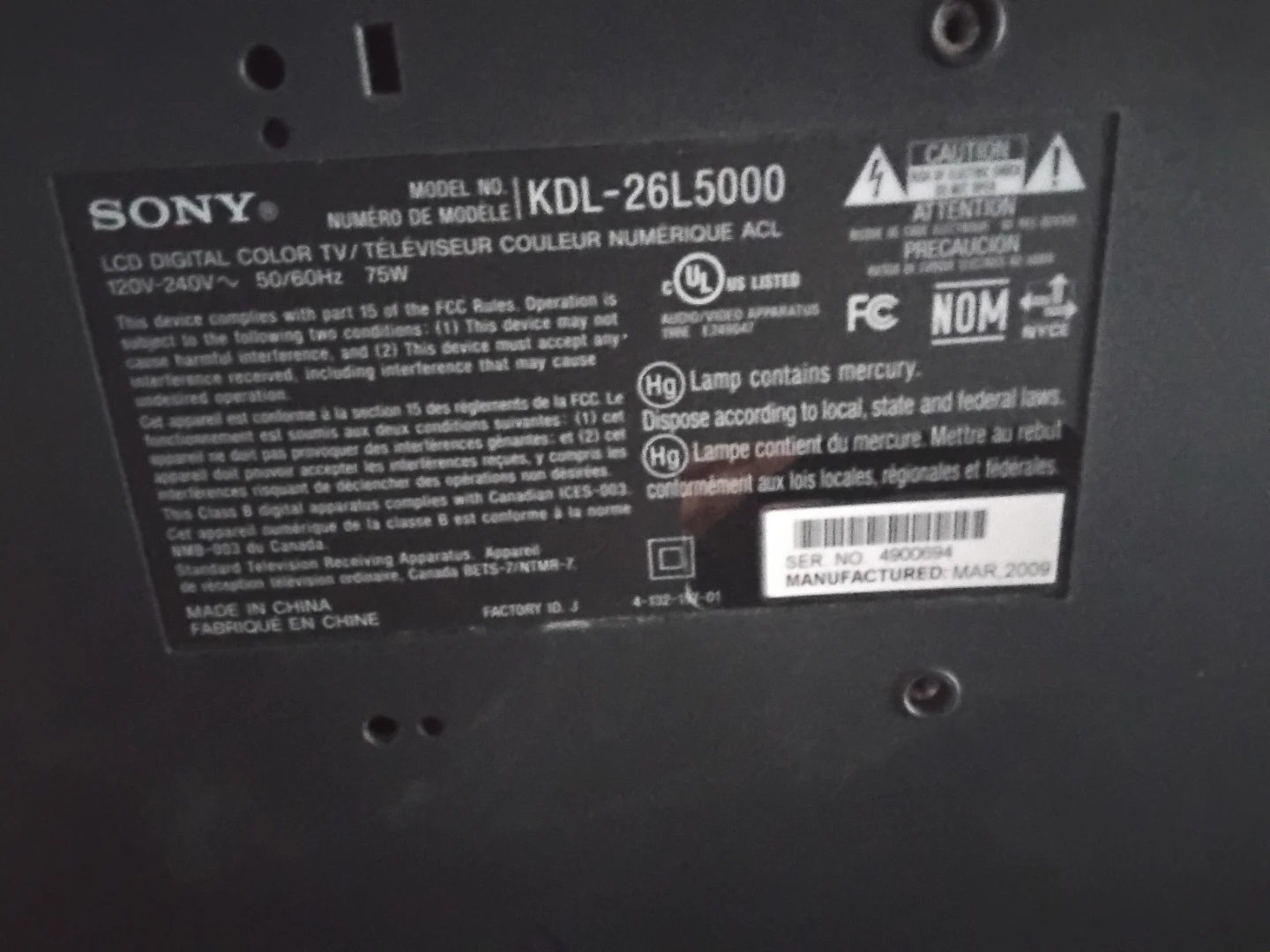 ✨️Selling a Sony Bravia LCD Digital Colour TV, model KDL-26L5000. It's an energy-efficient model. Manufactured in March 2009.