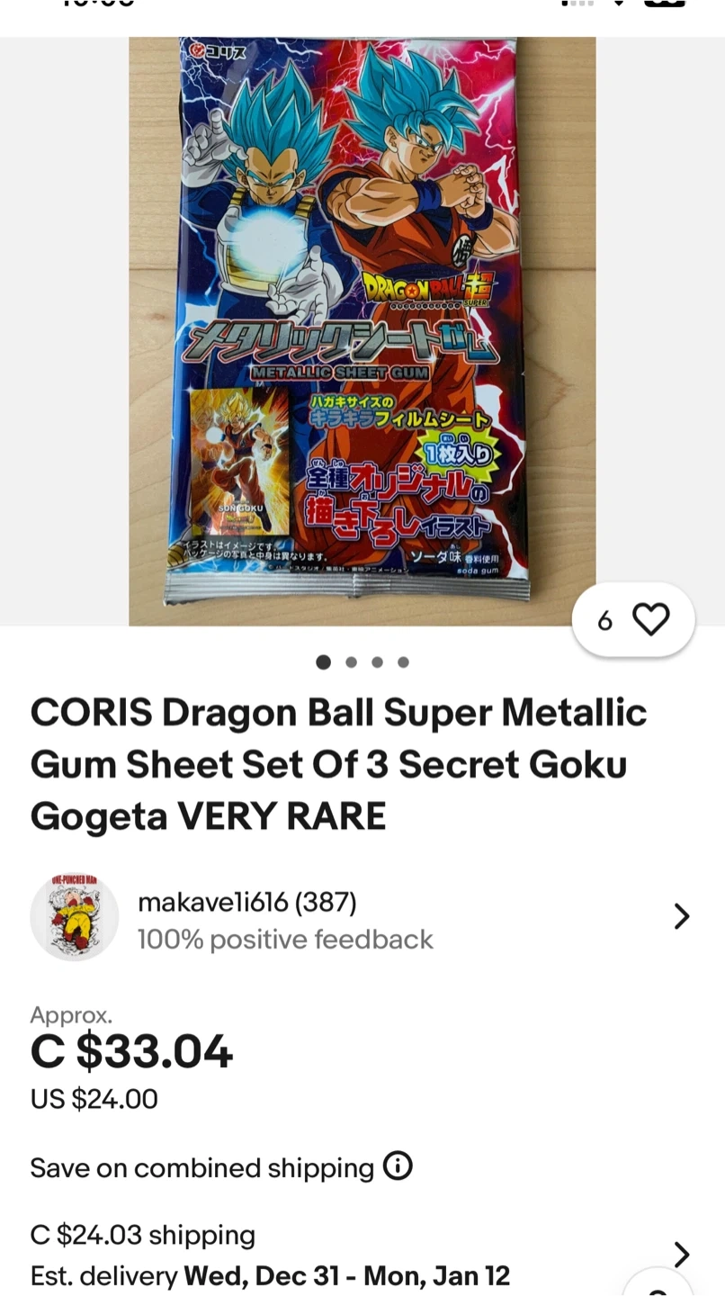 Selling half price, my last set of 6 CORIS Dragon Ball Super Metallic Gum Sheets! Each pack contains a metallic sheet of Dragon Ball characters. A fun collectible for any Dragon Ball fan!