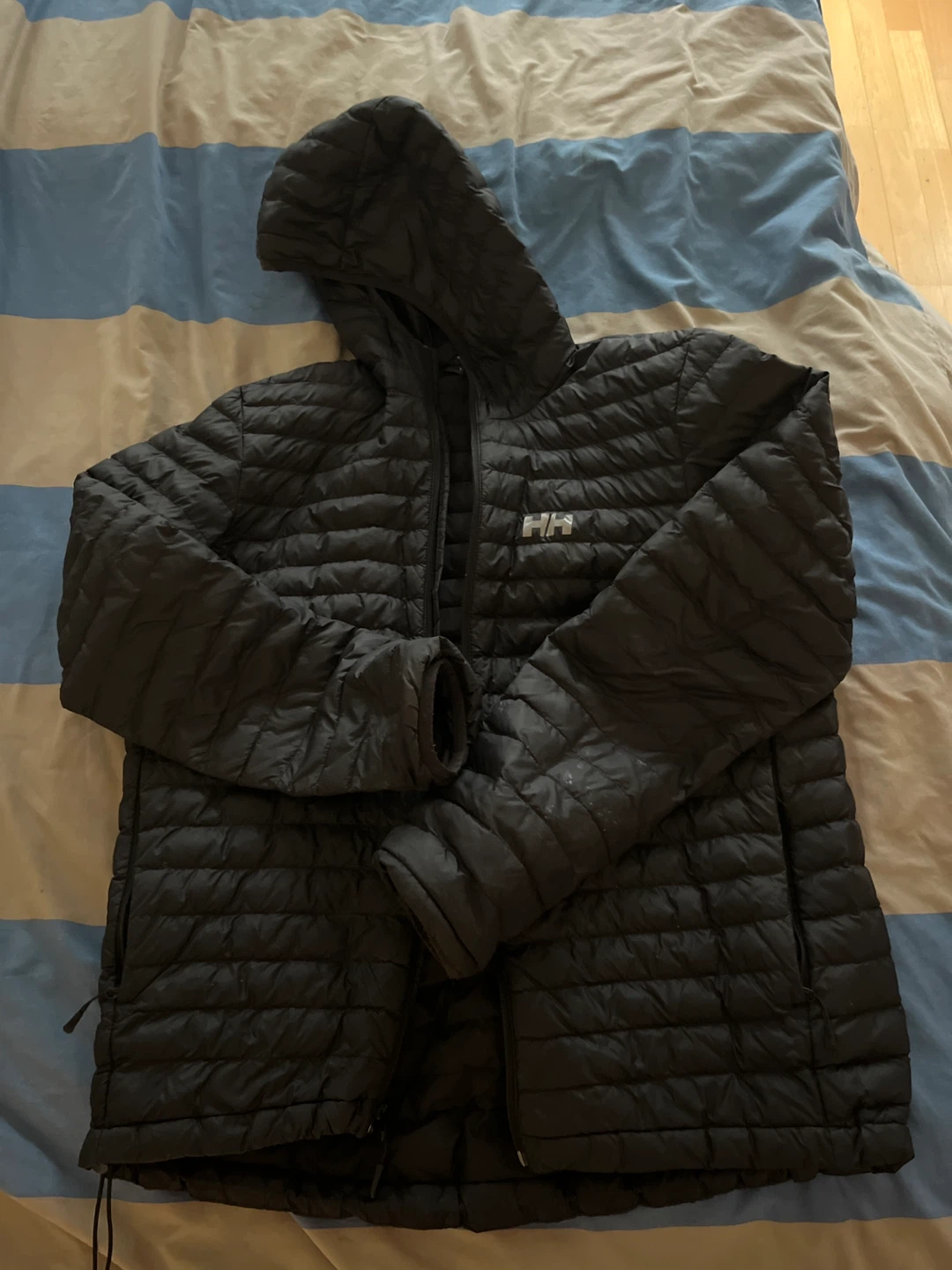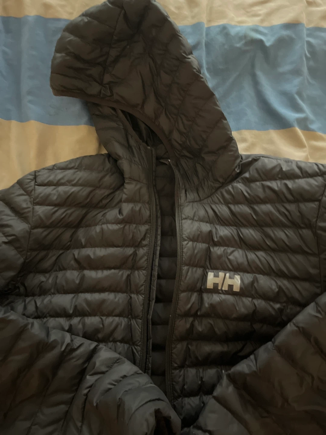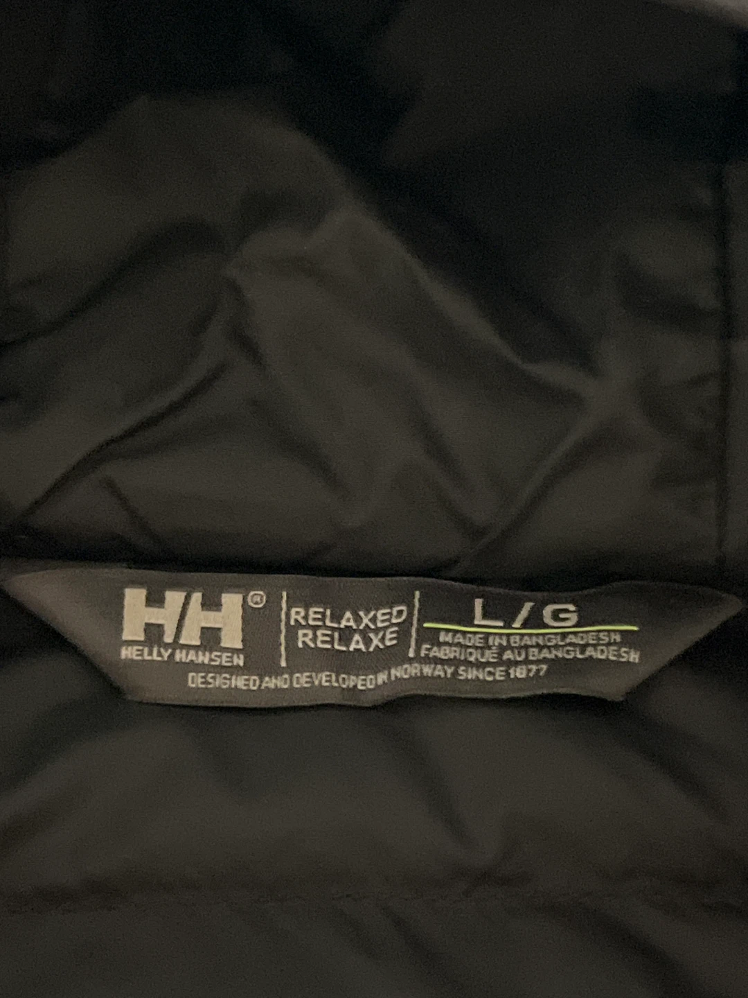 Selling a Helly Hansen relaxed puffer jacket in black. It's a size large (L/G). Designed and developed in Norway since 1877. Perfect for staying warm!