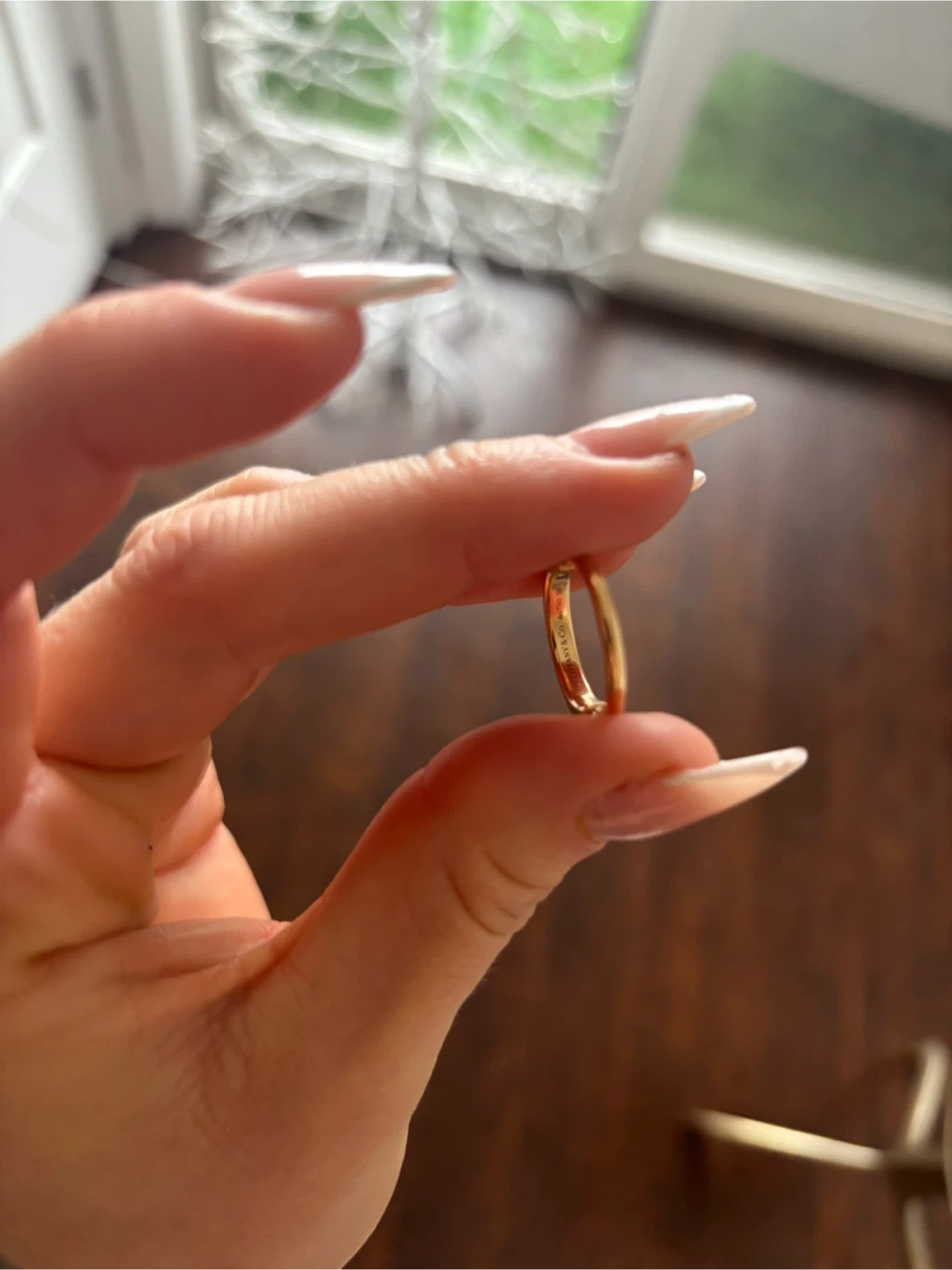Selling a beautiful gold ring from Tiffany & Co! It comes with the original Tiffany box for safekeeping. This ring is in great condition and ready to be worn and enjoyed. I received it as a gift from an ex , it was worn for 4 months. It retails for $1950 at Tiffany’s. I don’t have the receipt since it was a gift but I attached a photo showing the Tiffany stamp inside the ring. Inside the ring says AU 750 50 (18k gold size 50) so the sizing is roughly 5.25