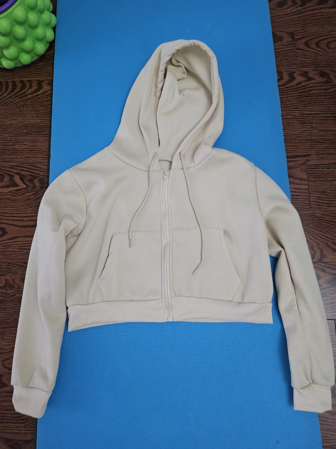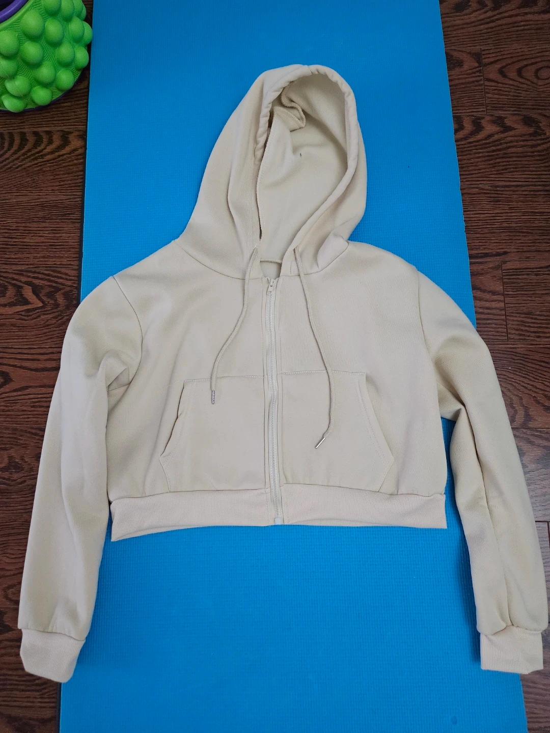 Selling a cute beige cropped zip-up hoodie! It's in great condition and would be a perfect addition to your wardrobe for layering or just lounging around