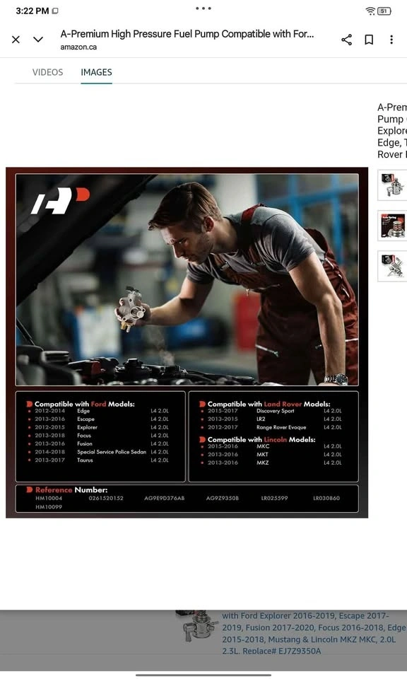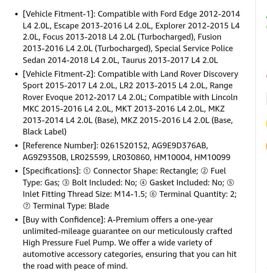 A-Premium High Pressure Fuel Pump Compatible with Ford Explorer, Escape, Fusion, Focus, Edge, Taurus, Police Sedan & Land Rover Range Rover Evoque, Discovery Sport, LR2 & Lincoln MKZ, MKC, MKT