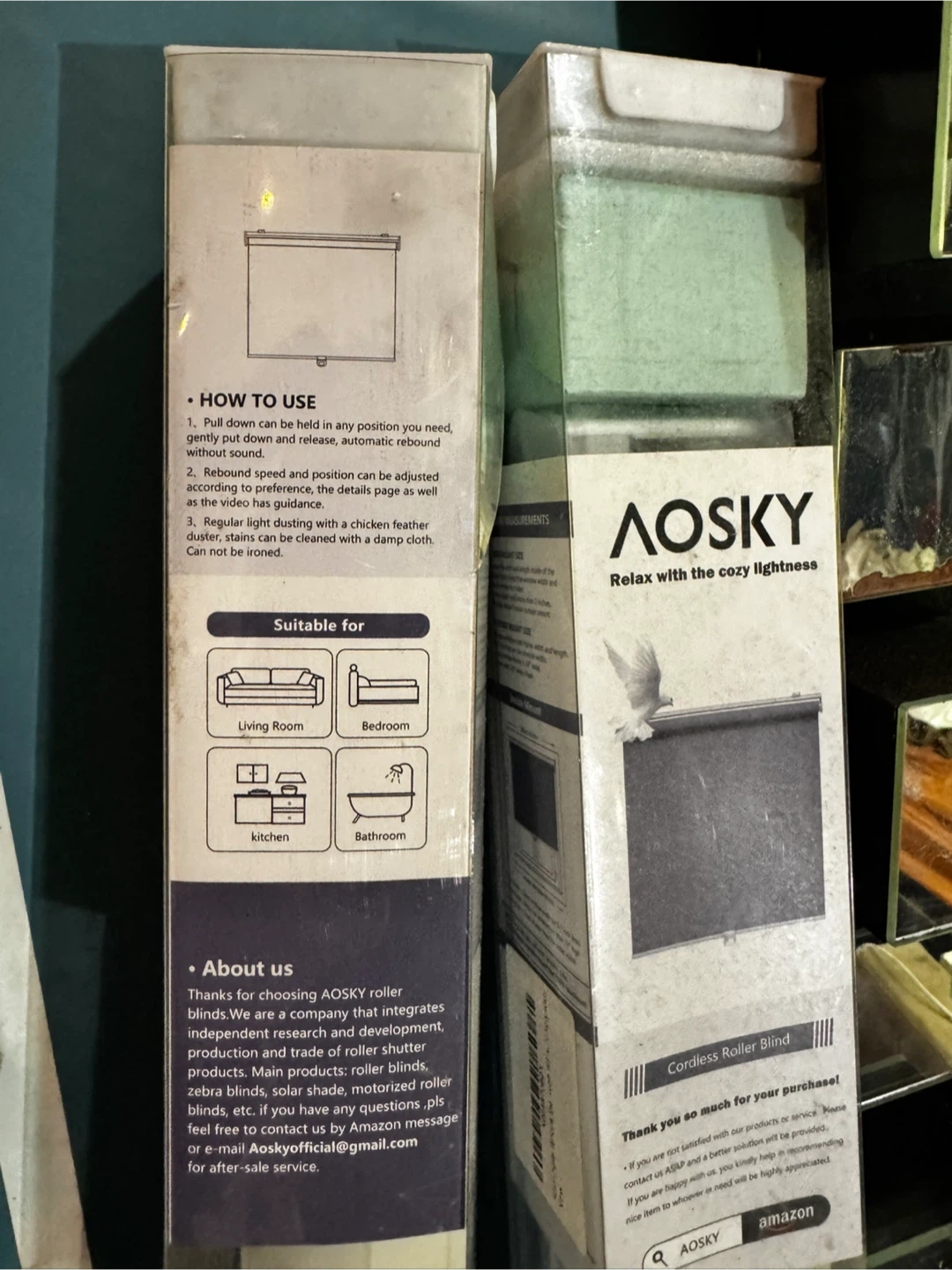 2 AOSKY Cordless Roller Blinds- New in Box!
