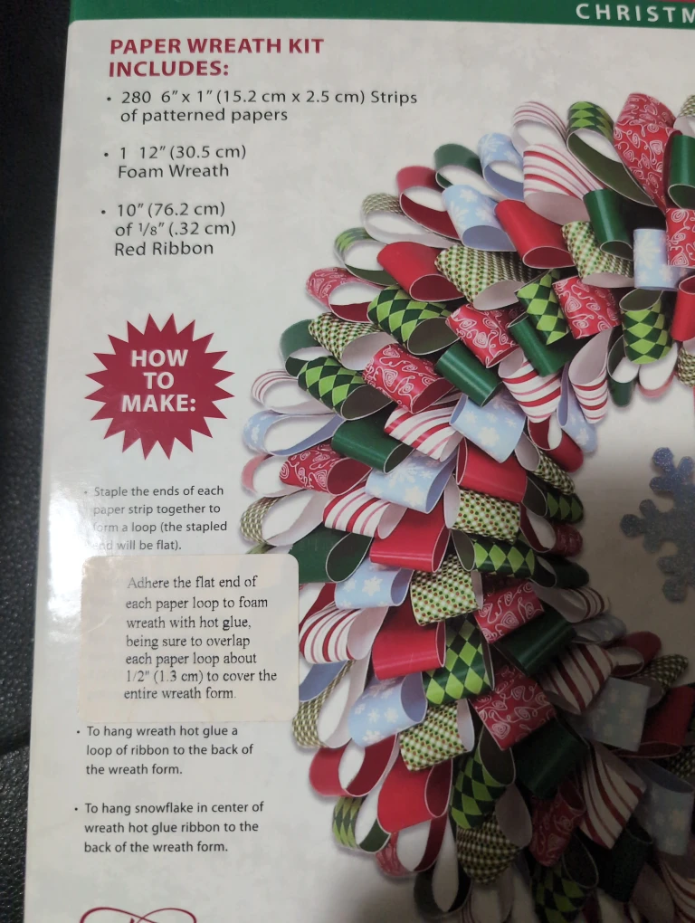 This paper wreath kit includes everything you need to make a festive Christmas decoration! It comes with 280 6" x 1" strips of patterned papers, a 12" foam wreath, and 10" of 1/8" red ribbon. Get crafty and create your own unique wreath this holiday season! BNB