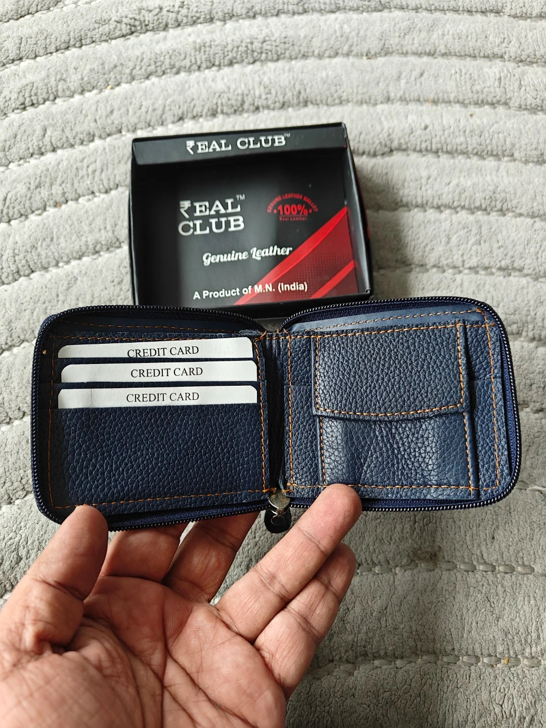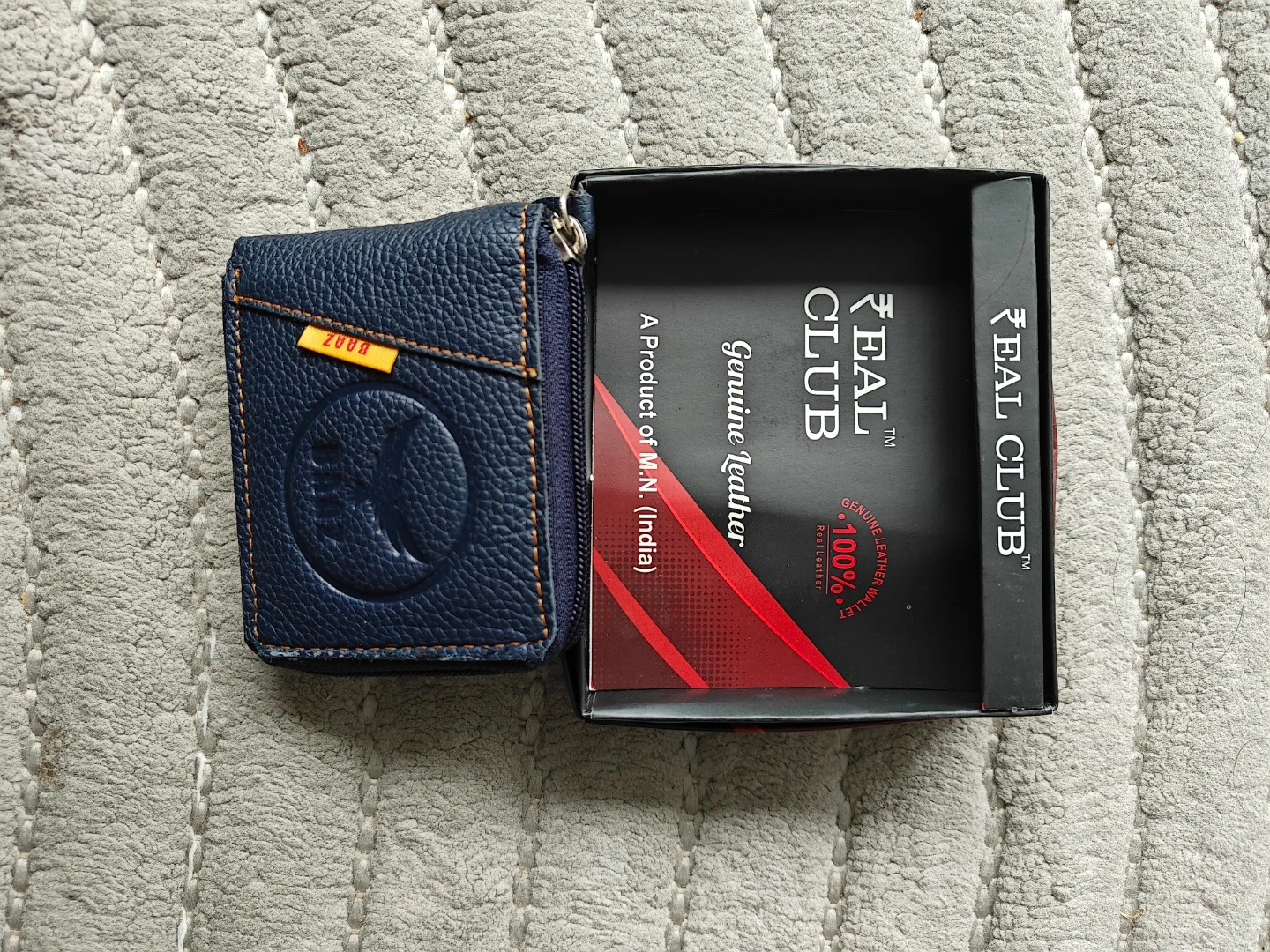 Check out this brand new Real Club genuine leather wallet! It's a stylish and practical accessory for keeping your cards and cash organized. The wallet features a zippered closure and plenty of slots for your credit cards. It also comes with its original box, making it perfect for gifting!