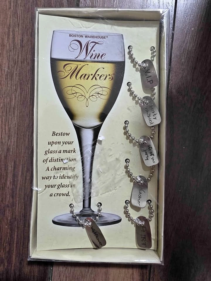 Buy & SellWine Glass Markers - Great Stocking StufferWine Glass Markers - Great Stocking Stuffer$2Still in Box - Great christmas gift for wine drinker! Pickup pondmillsWHERE TO MEETCheck LocationView MapSELLERKatePond Mills181 review0 chats·0 favorites·3 viewsSEND CHAT TO SELLERHi Kate! I’m interested in your listing.Hi Kate! I’m interested in your listing.Get the Karrot app to chatSign In to chat