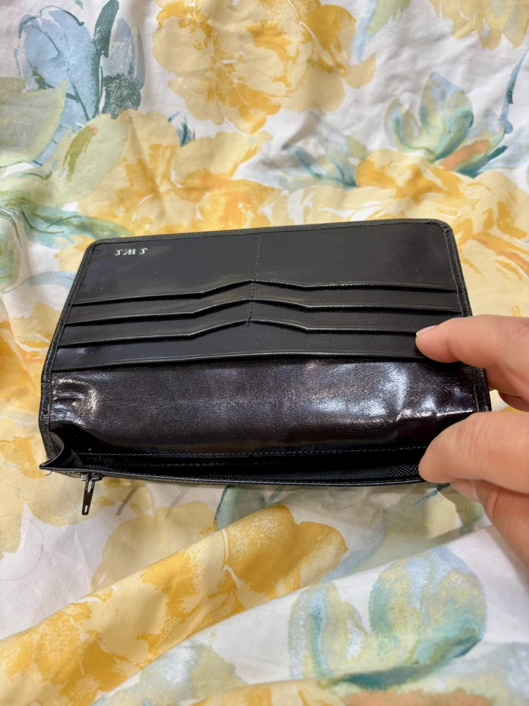 Selling a gently used black leather wallet. It has a classic design and is in good condition. Perfect for everyday use! (Unisex)