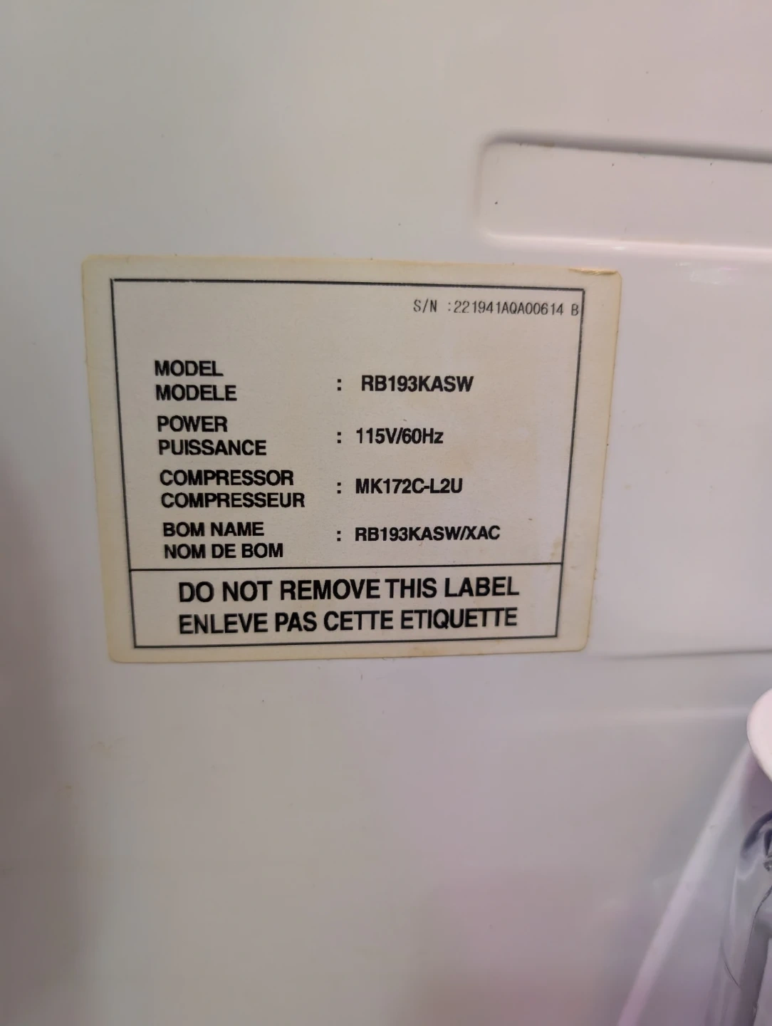 Selling a Samsung fridge/freezer, model number RB193KASW. It's in good working condition and ready for a new home. It has an interactive display and child lock feature.
