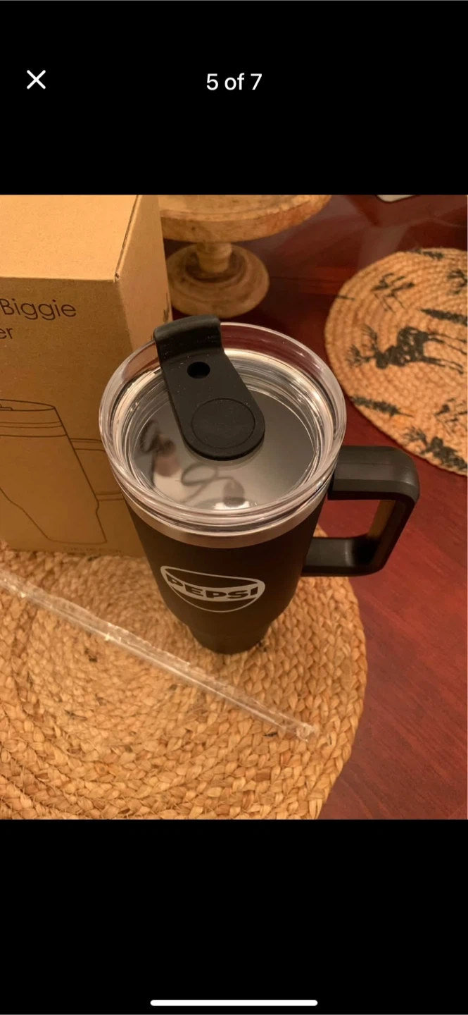 • Lid and Straw: The tumbler comes with a screw-on clear acrylic lid that has a rotating silicone tab, allowing for both open-hole drinking and reusable straw sipping.