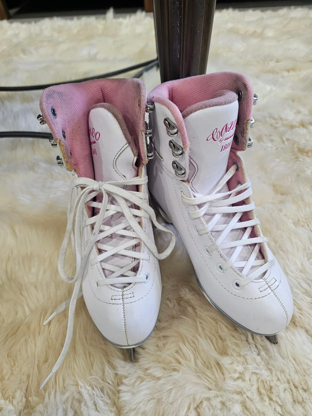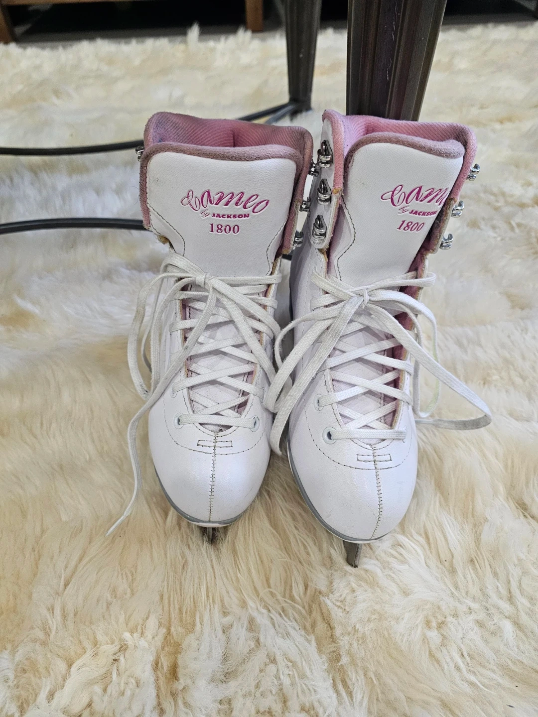Selling a pair of Jackson Classique 1800 ice skates in white and pink. They're in great shape and ready for the rink! Size 4.