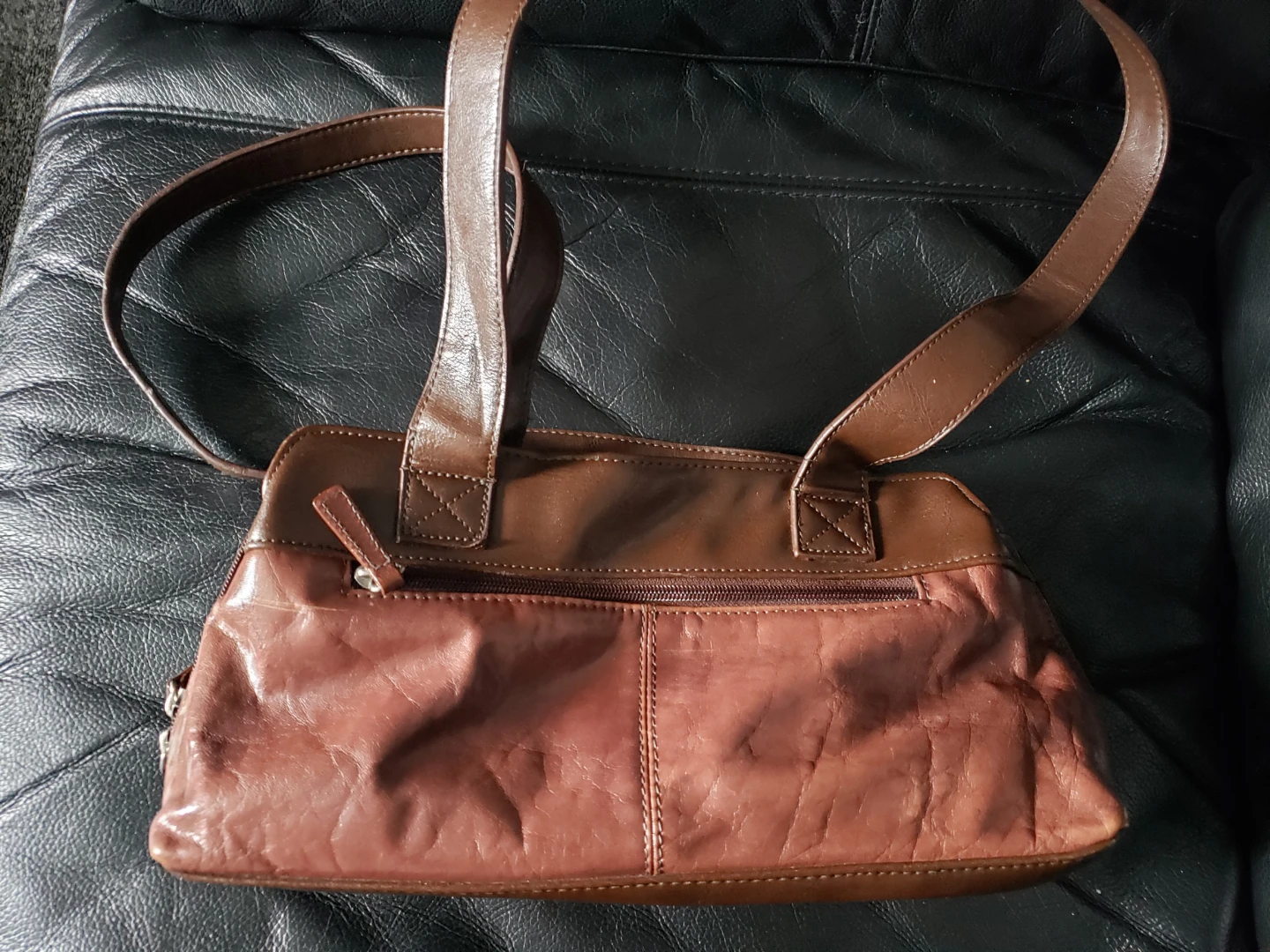 Here's a lovely brown genuine leather shoulder bag from Tuscan's Collection.
