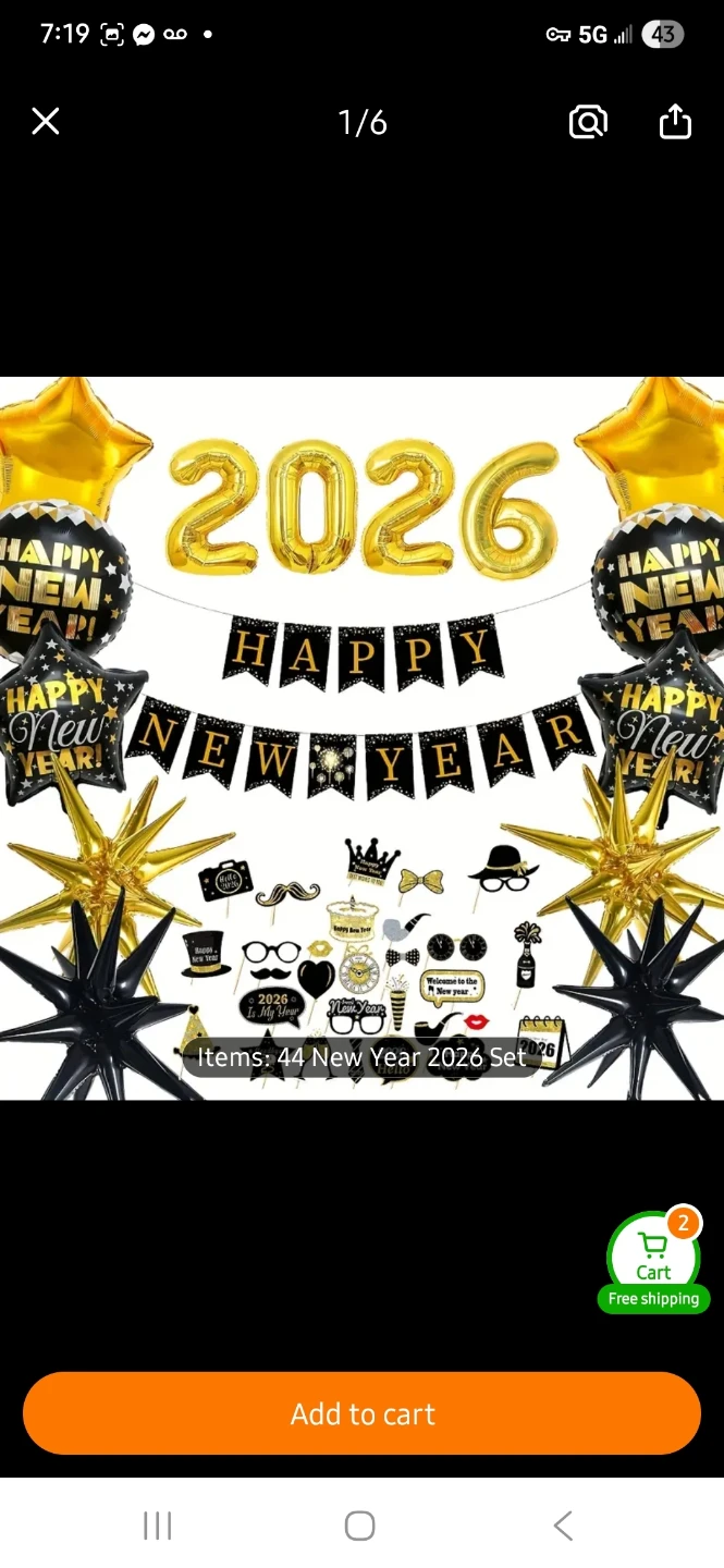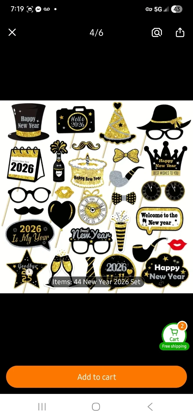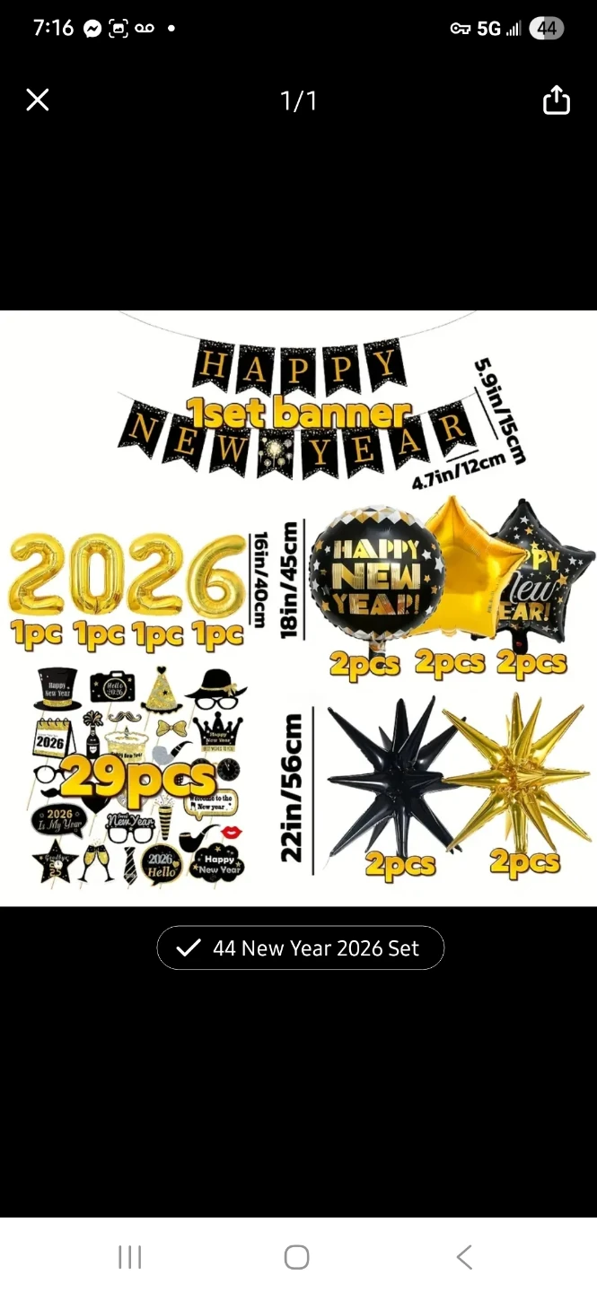 Get ready to celebrate New Year 2026 with this fun decoration set! It includes a banner, balloons, and various photo booth props to make your party extra special. The set comes with 44 pieces to create a festive atmosphere