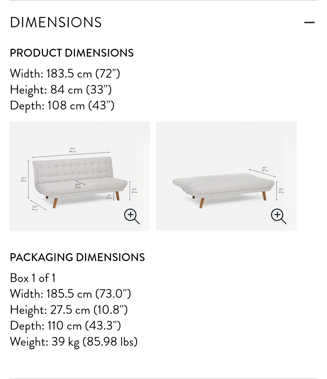 Need it to go ASAP! Structube Grey Tufted Futon Sofa Bed