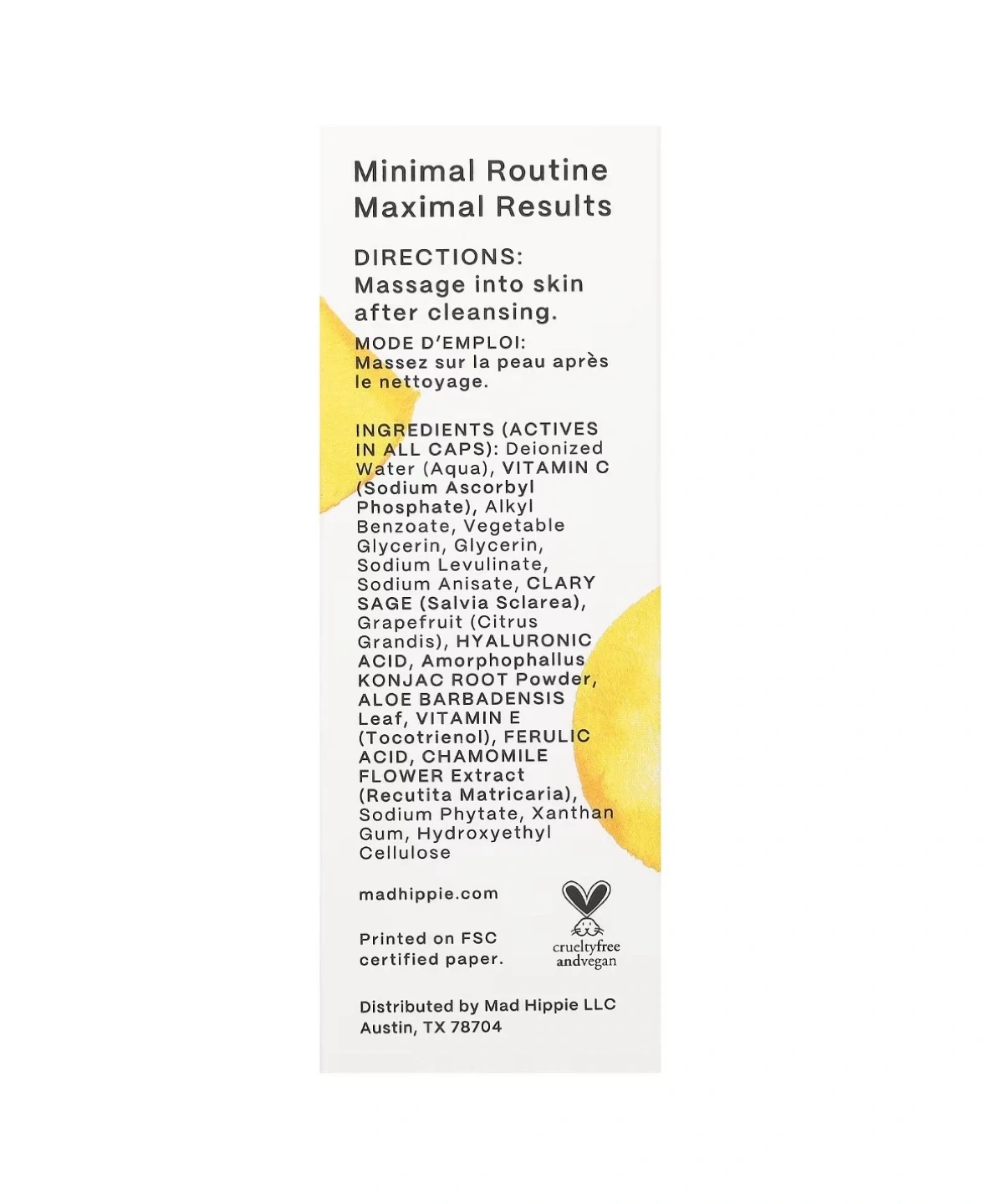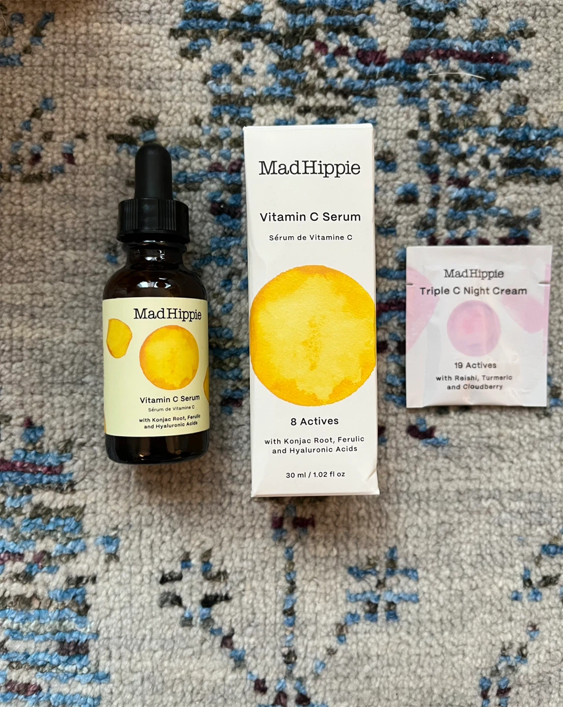 Selling a Mad Hippie Vitamin C Serum. It contains 8 actives including Konjac Root, Ferulic, and Hyaluronic Acids.
