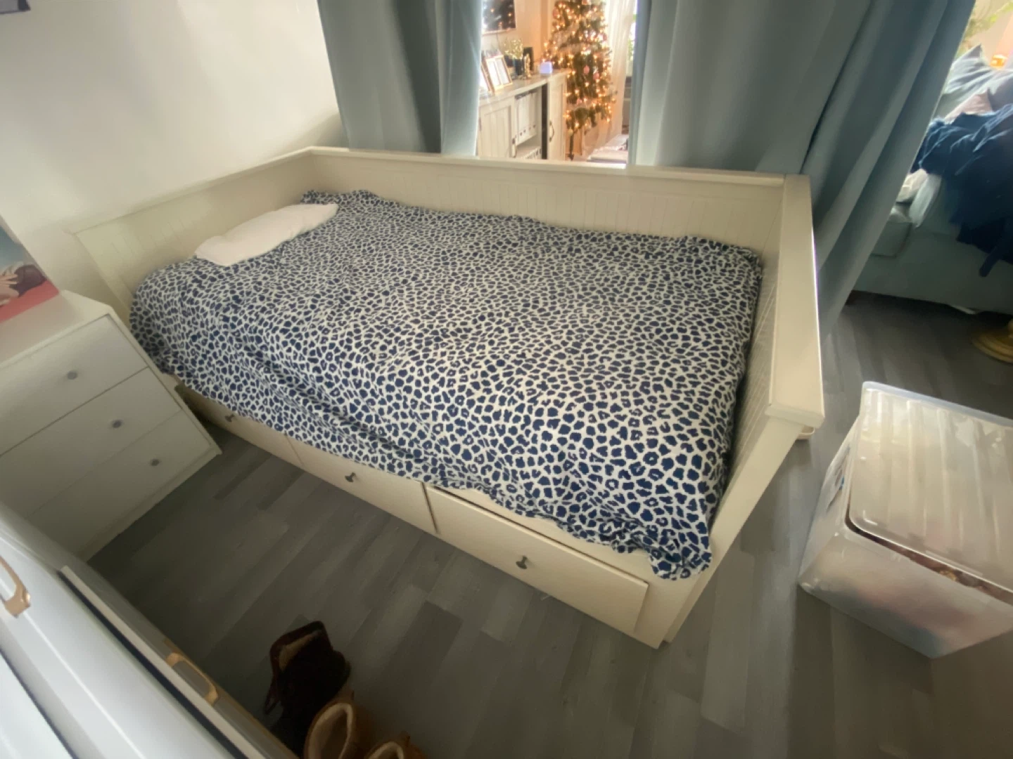 Selling an Ikea Hemnes daybed frame in great condition! This versatile piece is perfect as a sofa or a bed. It features a classic design and provides extra storage with its spacious drawers underneath. A great addition to any room!