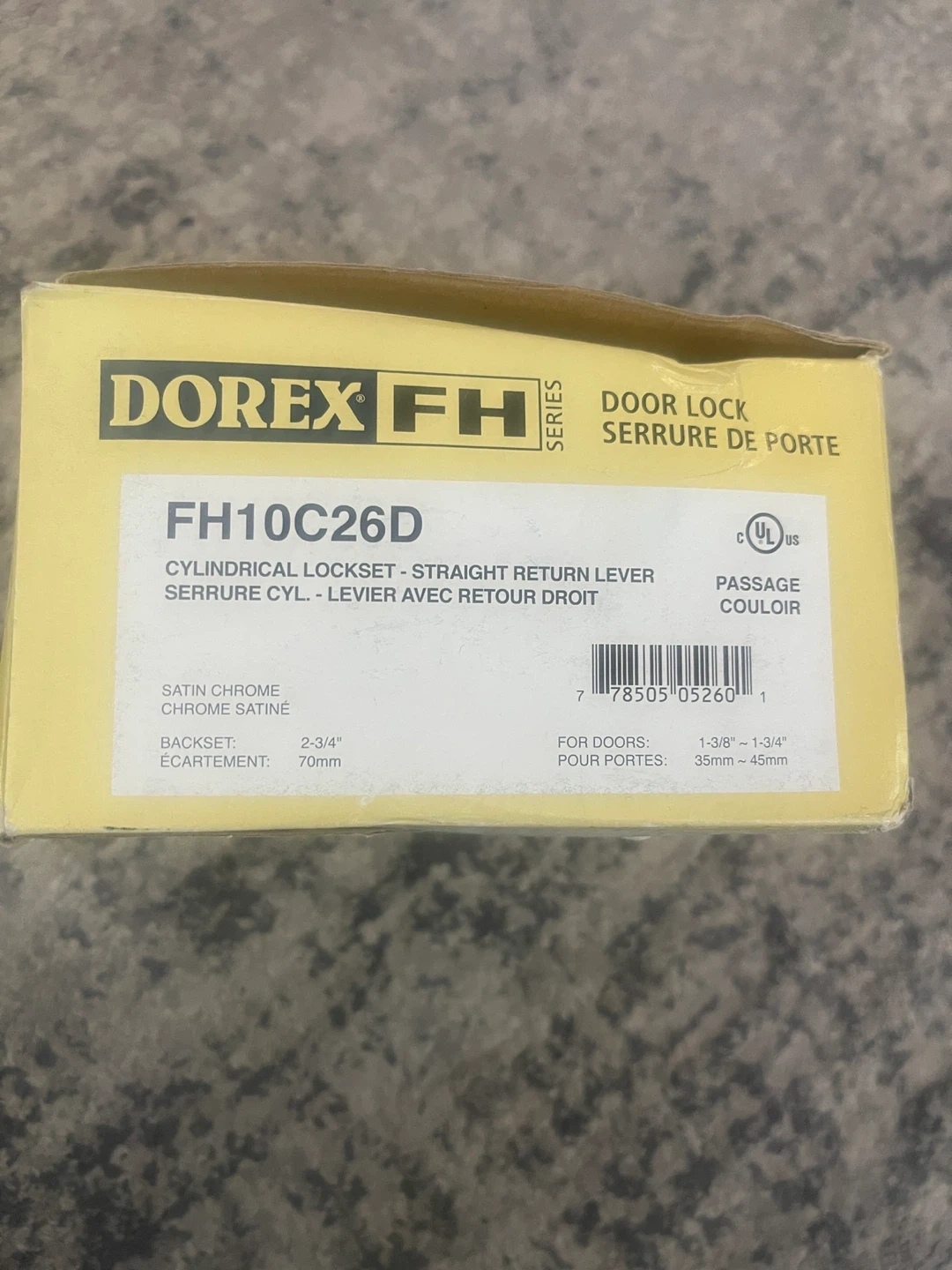 Selling a brand new Dorex FH Series door lock still in its original box! It's a commercial hardware door lock, and all the components are included. The box is a bit worn but the lock itself is untouched and ready for installation