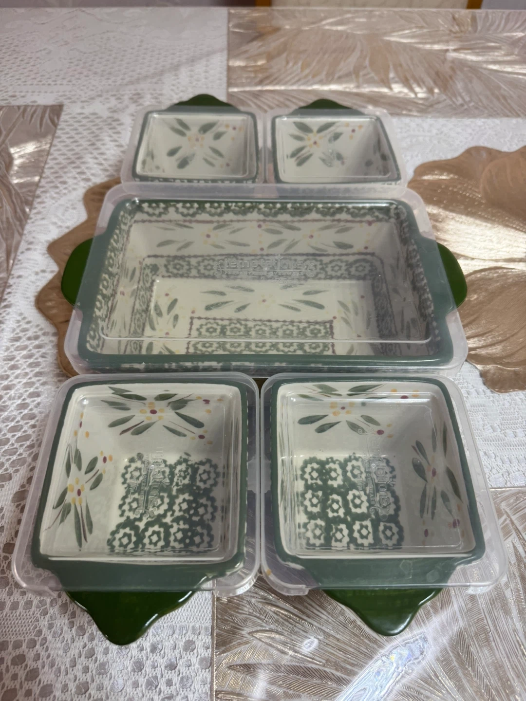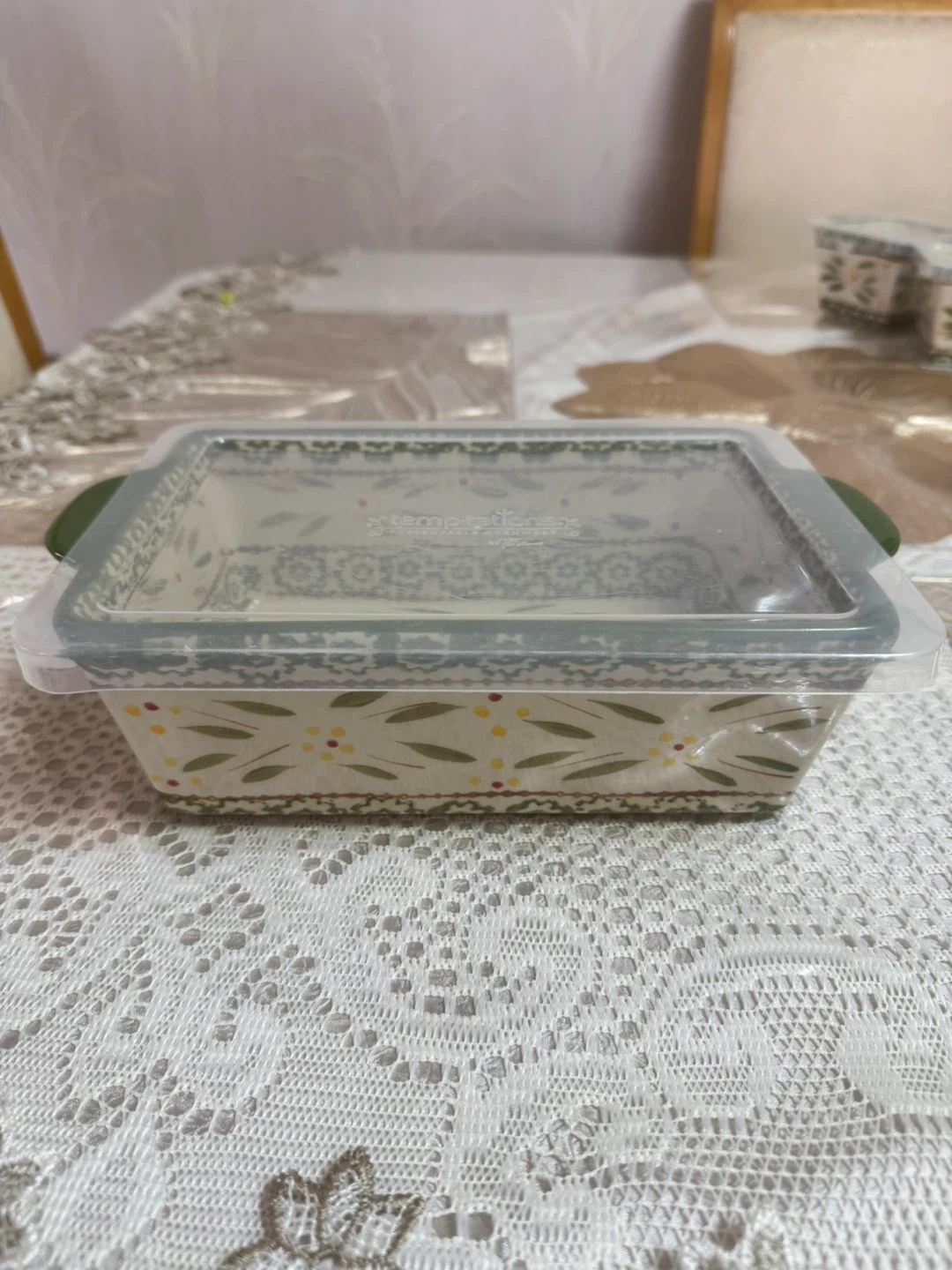 Selling a Temp-tations Floral Lace baker set! This set includes various sized square bakers with lids, perfect for baking and serving. The floral lace design adds a touch of elegance to your kitchen and table