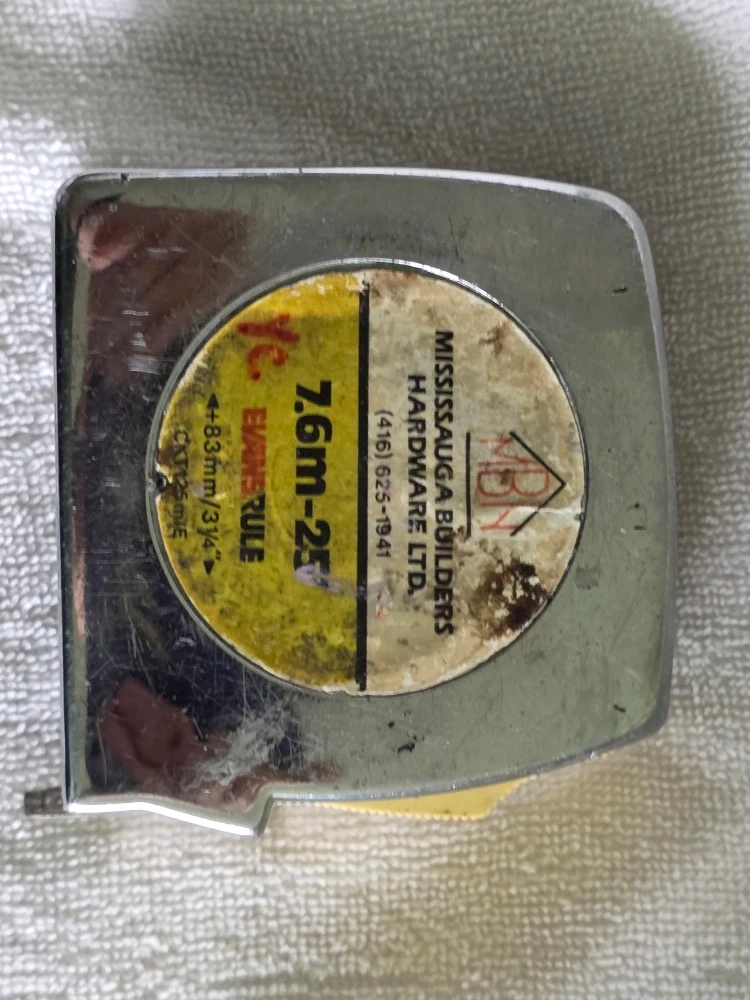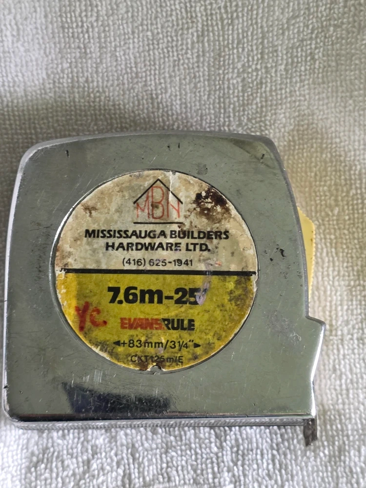 Selling a used Evans Rule tape measure, marked as 7.6m-25'. It shows signs of wear but is still functional. Great for any DIY projects or home improvements!