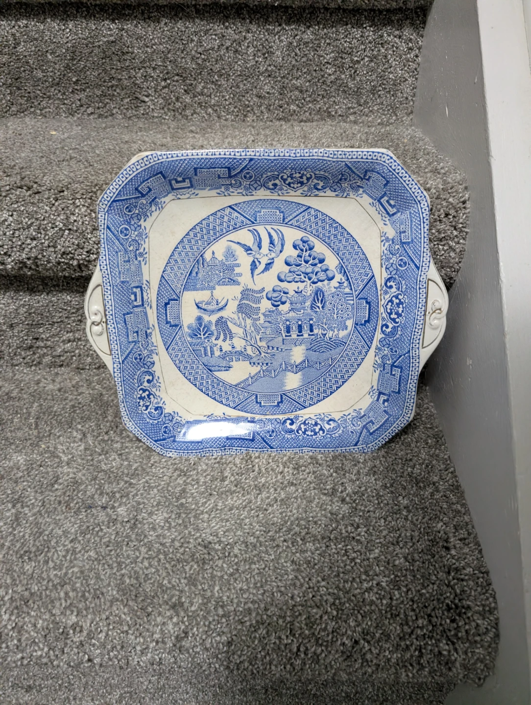 Selling a Myott Son & Co. England Willow side plate. It features a classic blue and white Willow pattern design and is in good condition for its age. Perfect for serving or display!
